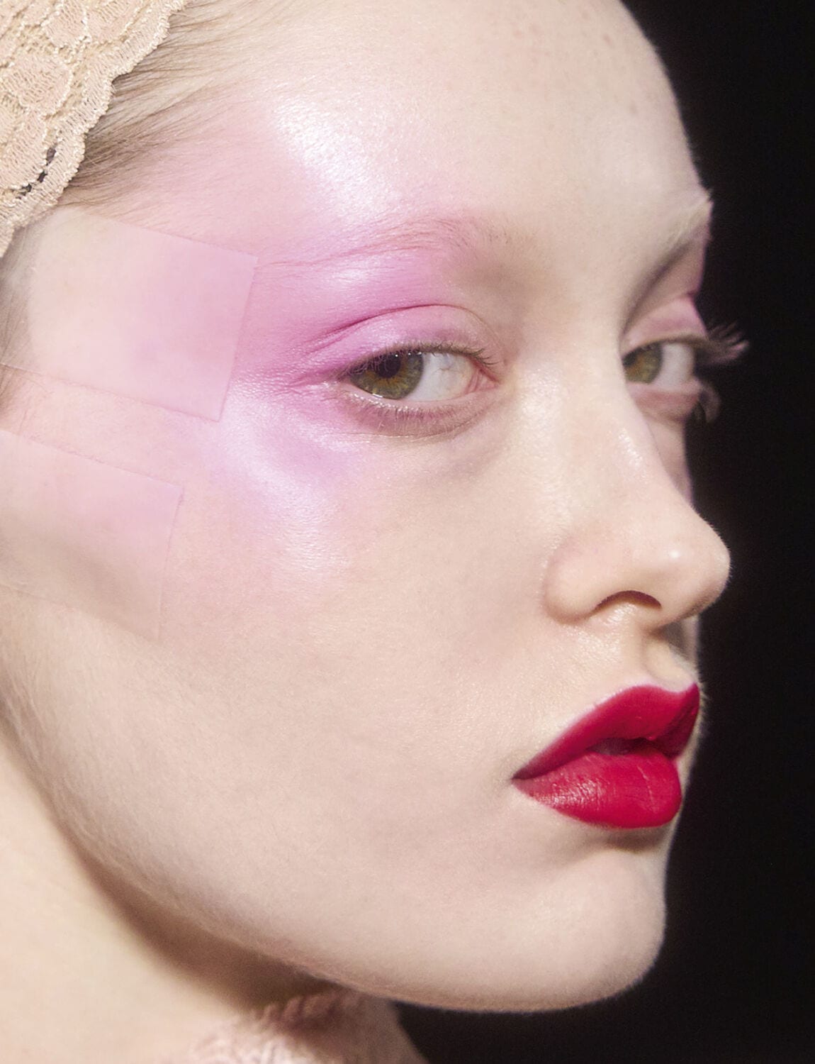 The innovative makeup artist and brand founder Isamaya Ffrench is leaning towards a sun-kissed, three-weeks-in-the- south-of-France flush. That translates to hues that are closer to your natural blush color and applied all over the face, from the cheeks to the eyelids and the bridge of the nose for a “really healthy, more modern take,” Ffrench says.