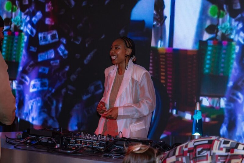 Martine Syms DJ’s at the H&M flagship store in New York, wearing full H&M SS25