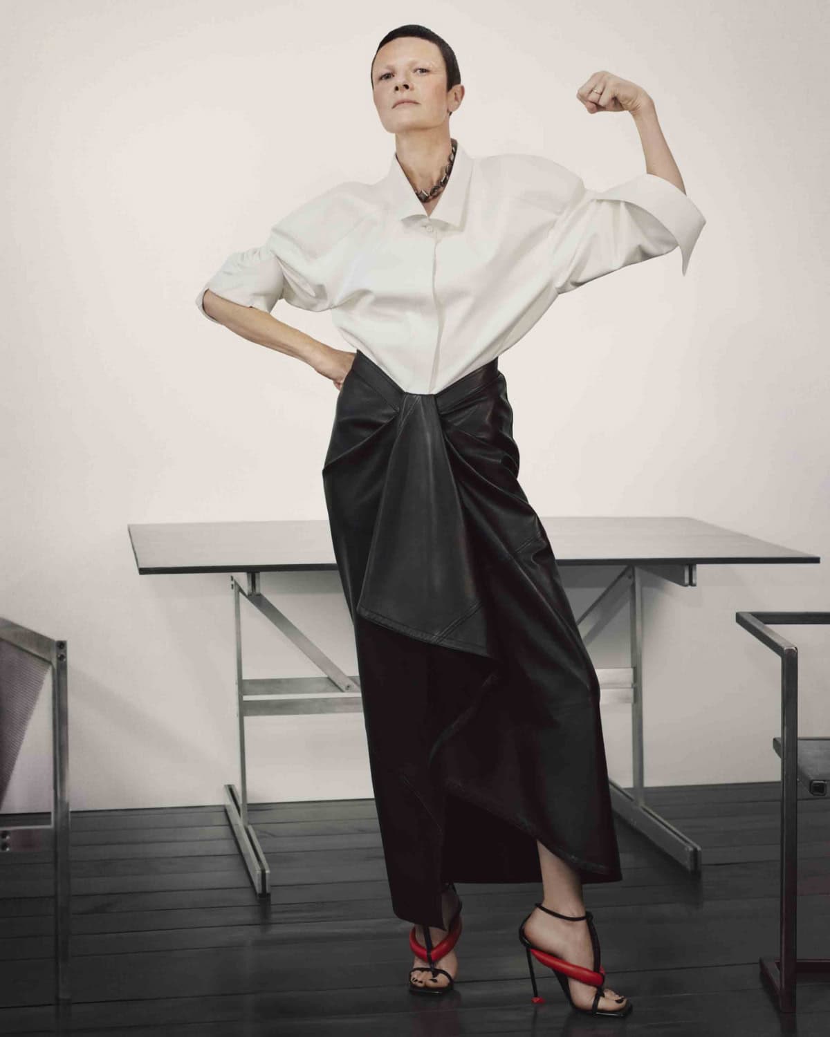 It’s very on brand for Sarah Burton to work with strong female figures to embody her collections for Givenchy. Continuing on the theme of a cast of characters, she worked with photographer Collier Schorr to capture Annie Leibowitz alongside Kaia Gerber, Liu Wen, Selena Forest and Isabelle Albuquerque. The images capture the women’s laughter, their visible enjoyment of the clothes and the dynamic of being in front and behind the camera.