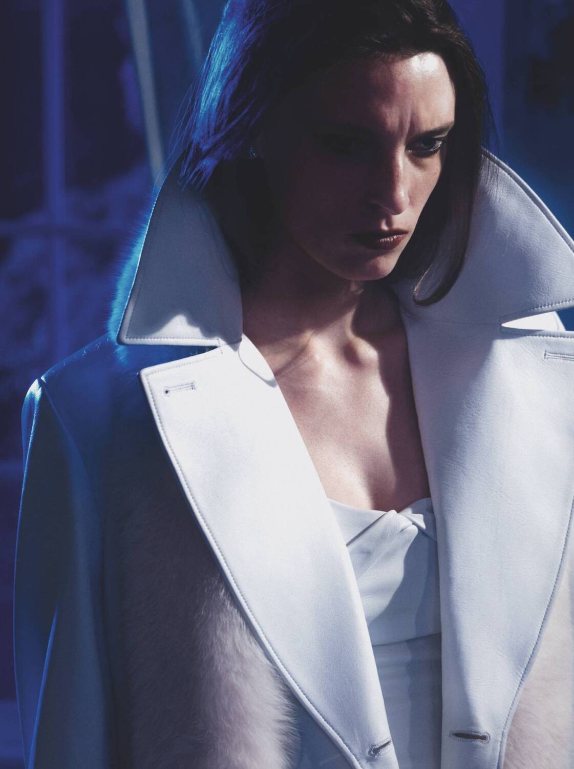 jacket, bra, and boots by GUCCI, earrings by D’HEYGERE