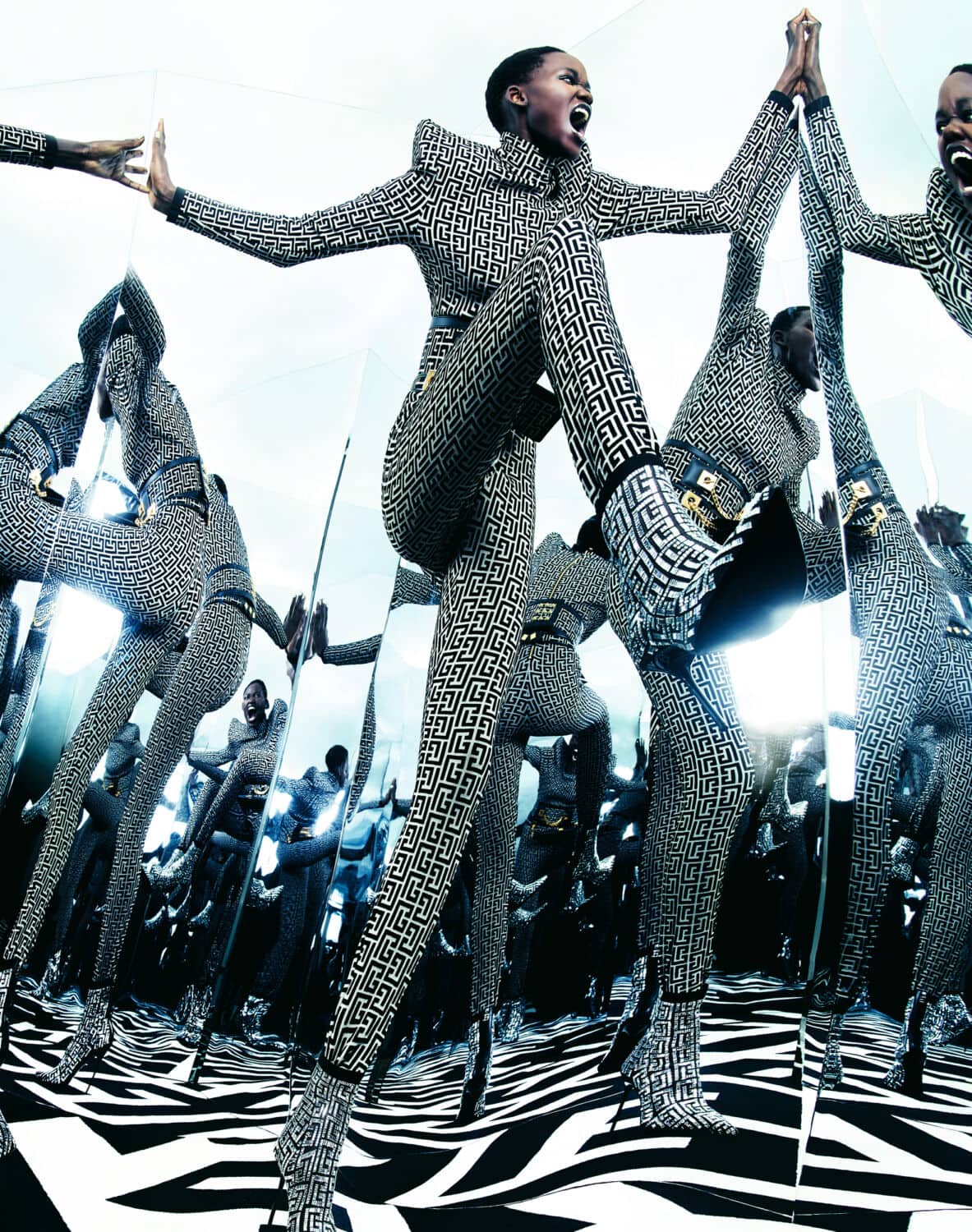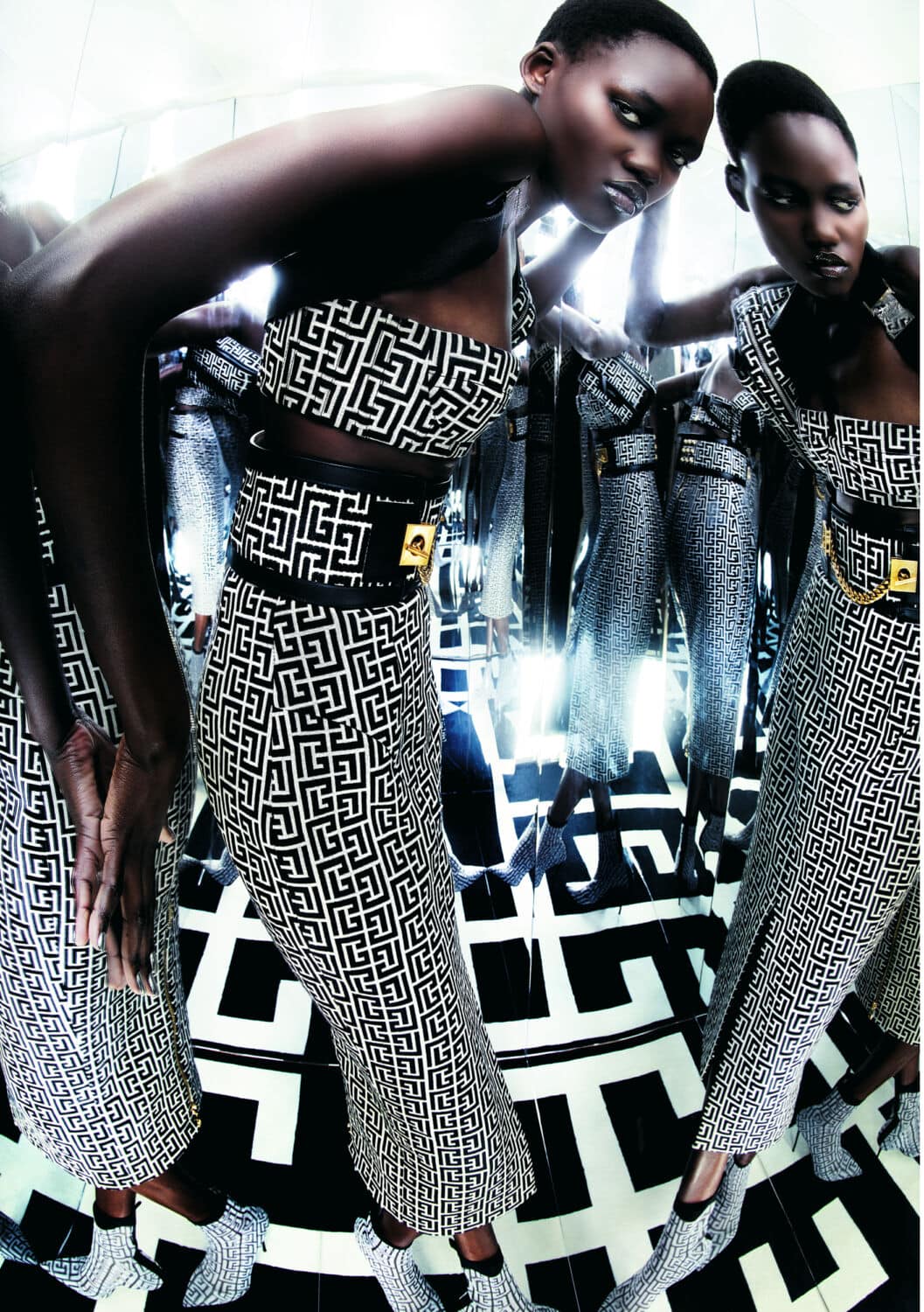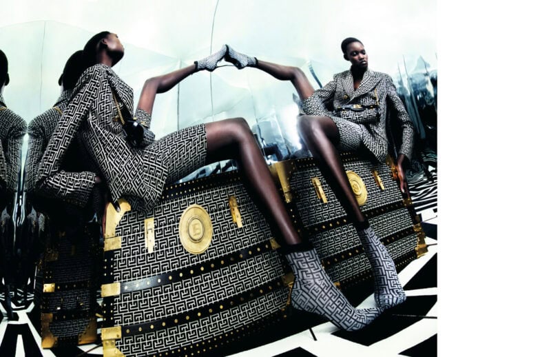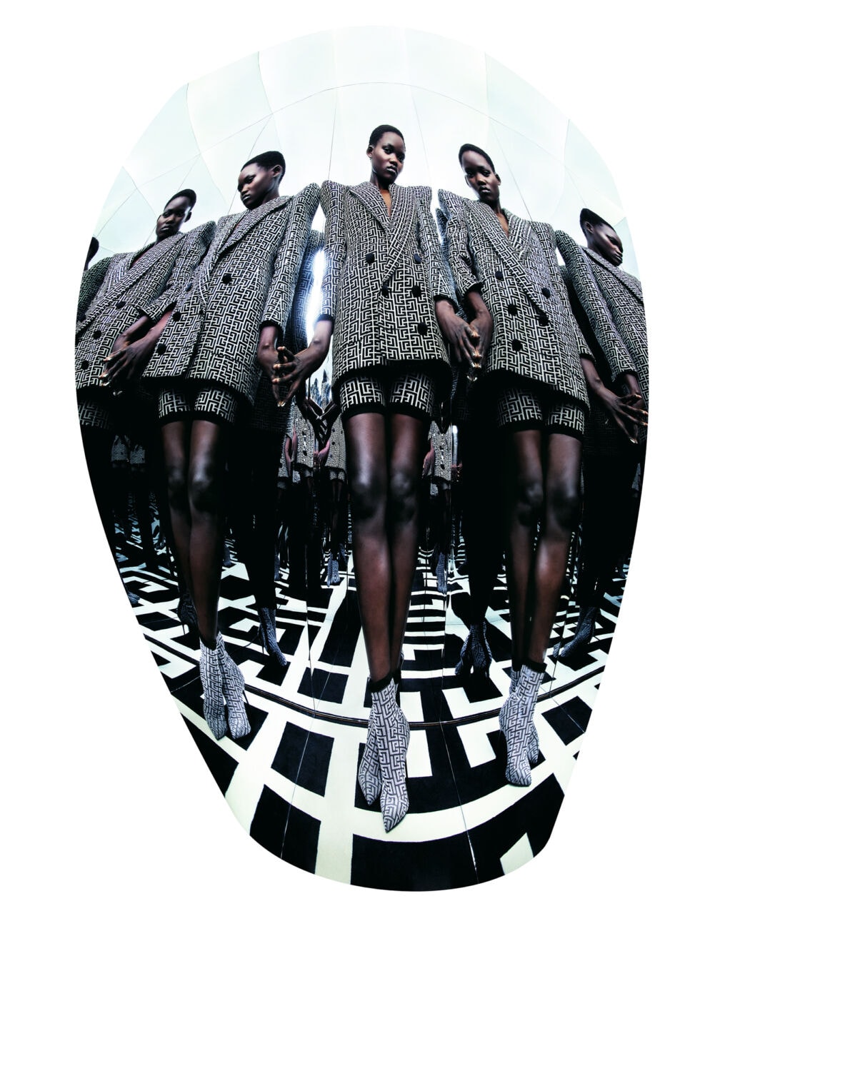 Community is at the core of what Rousteing has created at Balmain. Whenever his decisions were questioned, he could call upon his huge Balmain army of followers for support and validation. They represented the changing world. “We were an army because we were fighting,” says Rousteing. “What now feels so spontaneous and so normal and so simple, it was not at all at the time.” His decade at Balmain helped shift the status of fashion and introduced the idea of a diverse, inclusive luxury. Looking back, he says, “I have grown up and I’m more an adult and we are no longer soldiers. If I can say, we won our protest.”