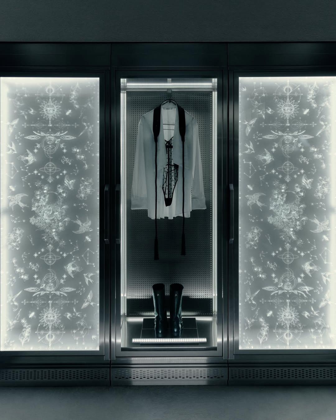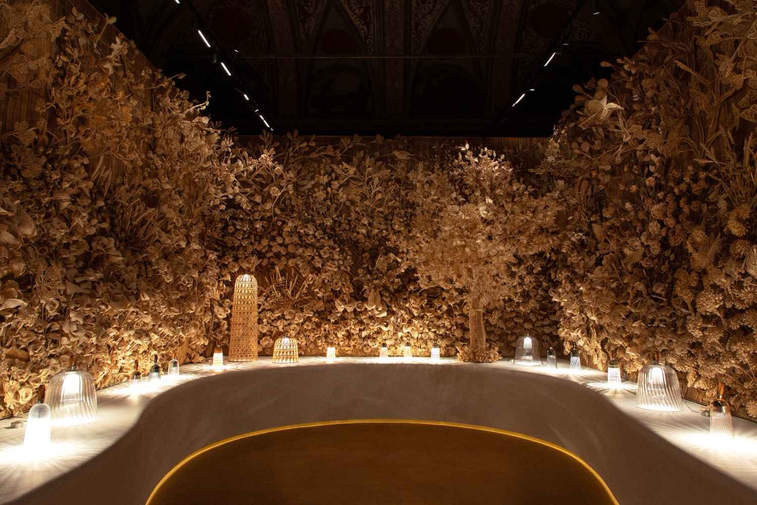 At Bottega Veneta, things get more tactile—and quietly immersive. In collaboration with Kwangho Lee, Lightful transforms the Via Sant’Andrea boutique into a space where material, light and shadow continuously negotiate with each other. Lee, known for pushing traditional craft into unexpected territories, works with woven leather strips—a direct nod to the house’s Intrecciato heritage — to create suspended, organic forms that seem to hover between sculpture and installation. Under the direction of Louise Trotter, the project becomes less about spectacle and more about process. Light doesn’t just illuminate; it reveals texture, density, imperfection. The result is an environment that feels alive but restrained, where craftsmanship is not explained, but experienced. In a week often driven by visual overload, Bottega chooses a different approach: slow down, look closer.