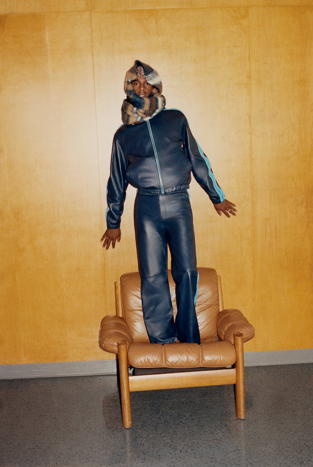 As pop culture catalysts in their own right, Apollo and Bakar appear in a deconstructed and oversized Balenciaga blazer, and a retro Marni tracksuit respectively. Apollo admits that while his personal style most definitely doesn’t stay static, his current look is chock-full of denim. He says: “I’ve been experimenting with vintage and newer denim and then building from there.” His favourite pieces from the AW22 edit are Balenciaga’s for their gargantuan silhouettes and sleek, street treatments. Bakar, on the other hand, finds that his style is predominantly informed by his mother, family and environment as a child. “I think I developed my sense of style through seeing and absorbing the things around me,” he explains. As for his favourite Farfetch labels? He says Saint Laurent was an easy pick, since the Parisian heritage house has always been on his radar. “I’ve been wearing skinny jeans since I heard Bloc Party for the first time,” he adds, but Amiri, too, piqued his interest: “I really like what Amiri represents to people in my area,” explaining, “I think Amiri raised the taste level in denim”.