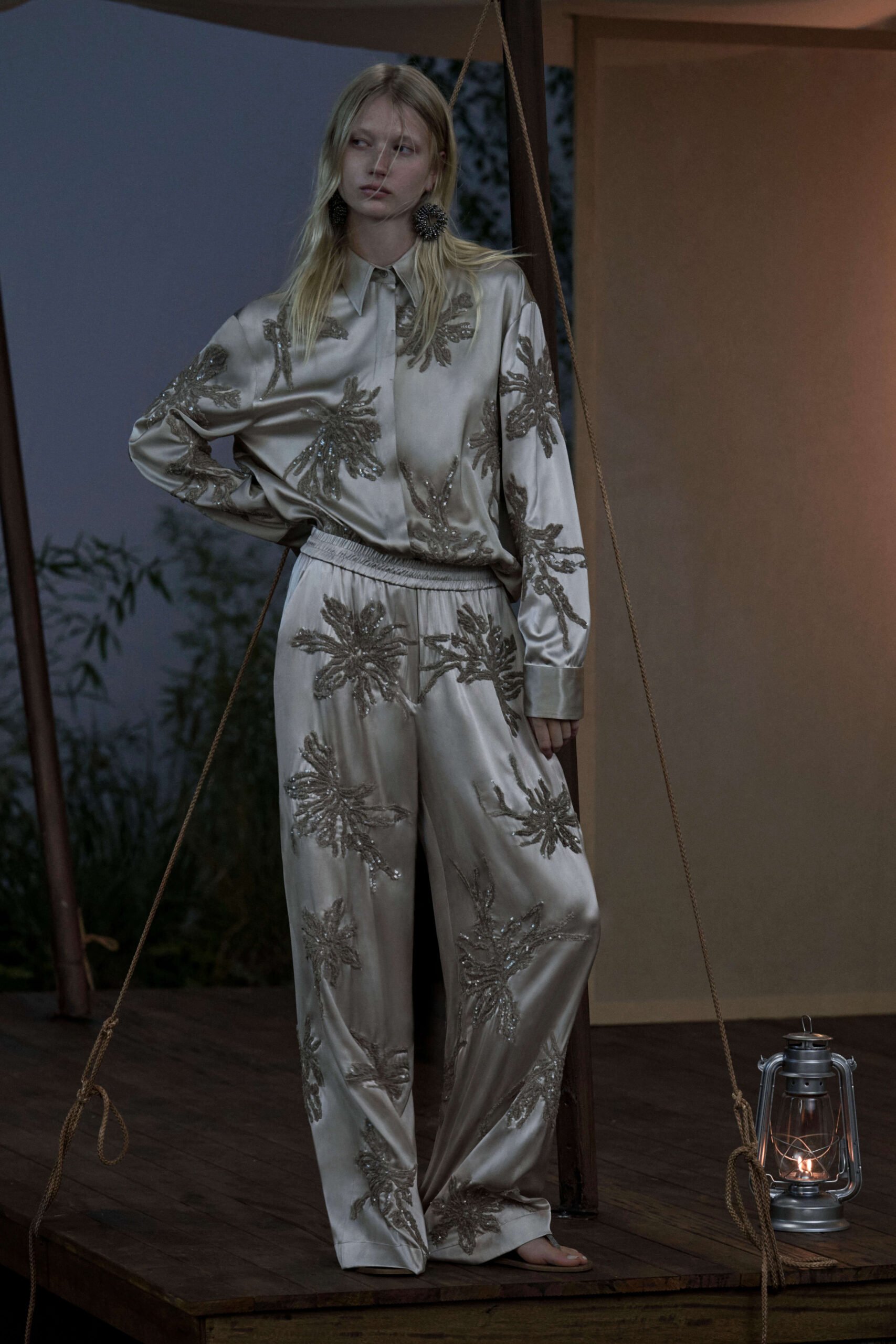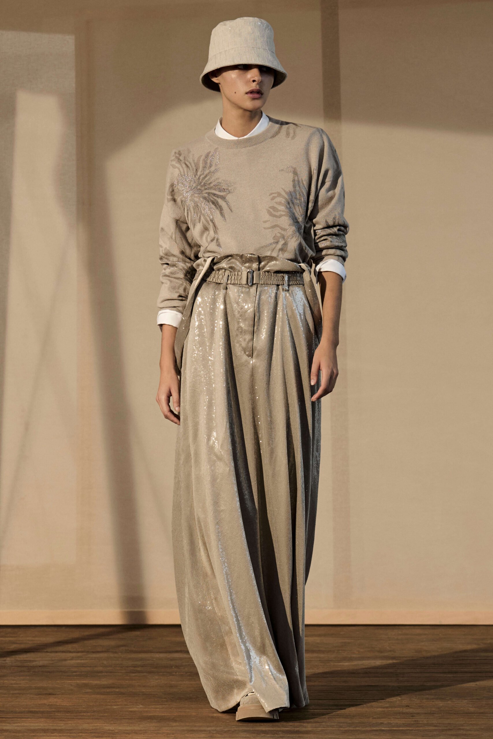 Bohemian in spirit, Cucinelli channelled his finest fabrics into mannish slacks, casual suiting and safari-appropriate headwear. Amongst the brand’s signature neutral hues, the design team developed a new metallic pattern which glistens along this season’s offering like painterly brushstrokes. Dusty lavenders and rose pinks also make delightful new additions to the Cucinelli arsenal.