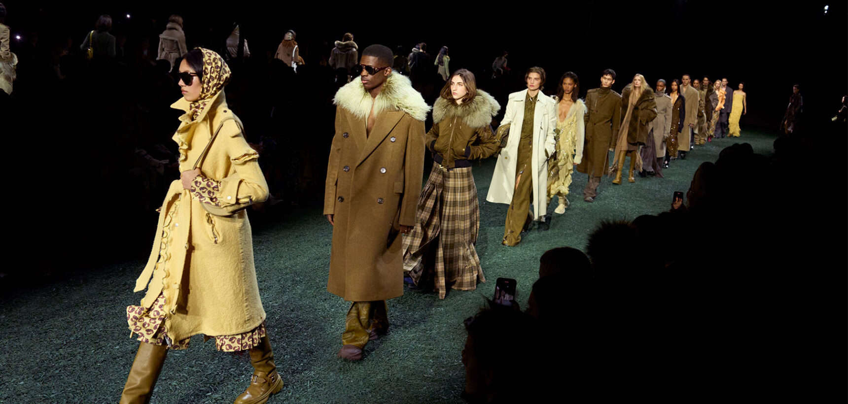 Beyond the trench, Lee played with the idea of field jackets and duffle coats, adding shearling, braided fringing and fleecy wool to give everything a cozy and tactile feel. The color palette was neutral and earthy — this was a return to nature as viewed through a very classic British lens. Speaking of British, the casting felt like a who’s who of every major U.K. model from the last twenty years. Besides Deyn, the show featured Lily Donaldson, Lily Cole, Karen Elson, Edie Campbell, and Naomi Campbell. But the biggest surprise of them all was who closed the show. Phoebe Philo’s daughter Maya Wigram made her runway debut, bringing to mind her mother’s signature cool with her hair tucked into the trench. And before you ask, yes, Naomi Campbell was also on the list. The super may have given Wigram the last position, but she closed the finale walk as the exclamation point to a very English night in the (sort of) country.