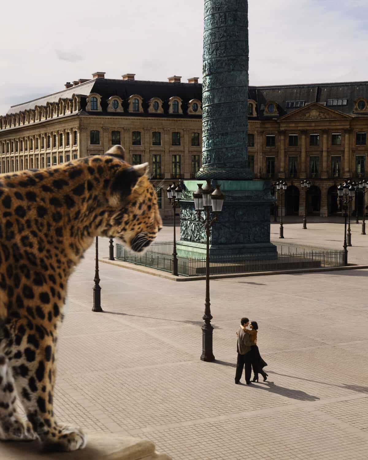 In celebration, Cartier created a campaign that’s set both in Paris and New York. In Place Vendôme, a couple walks as a panther, another symbol of the brand, watches over them. Meanwhile in NYC, instantly recognizable landmarks like the Empire State Building and the Brooklyn Bridge serve as backdrops, highlighting the universal power of love.