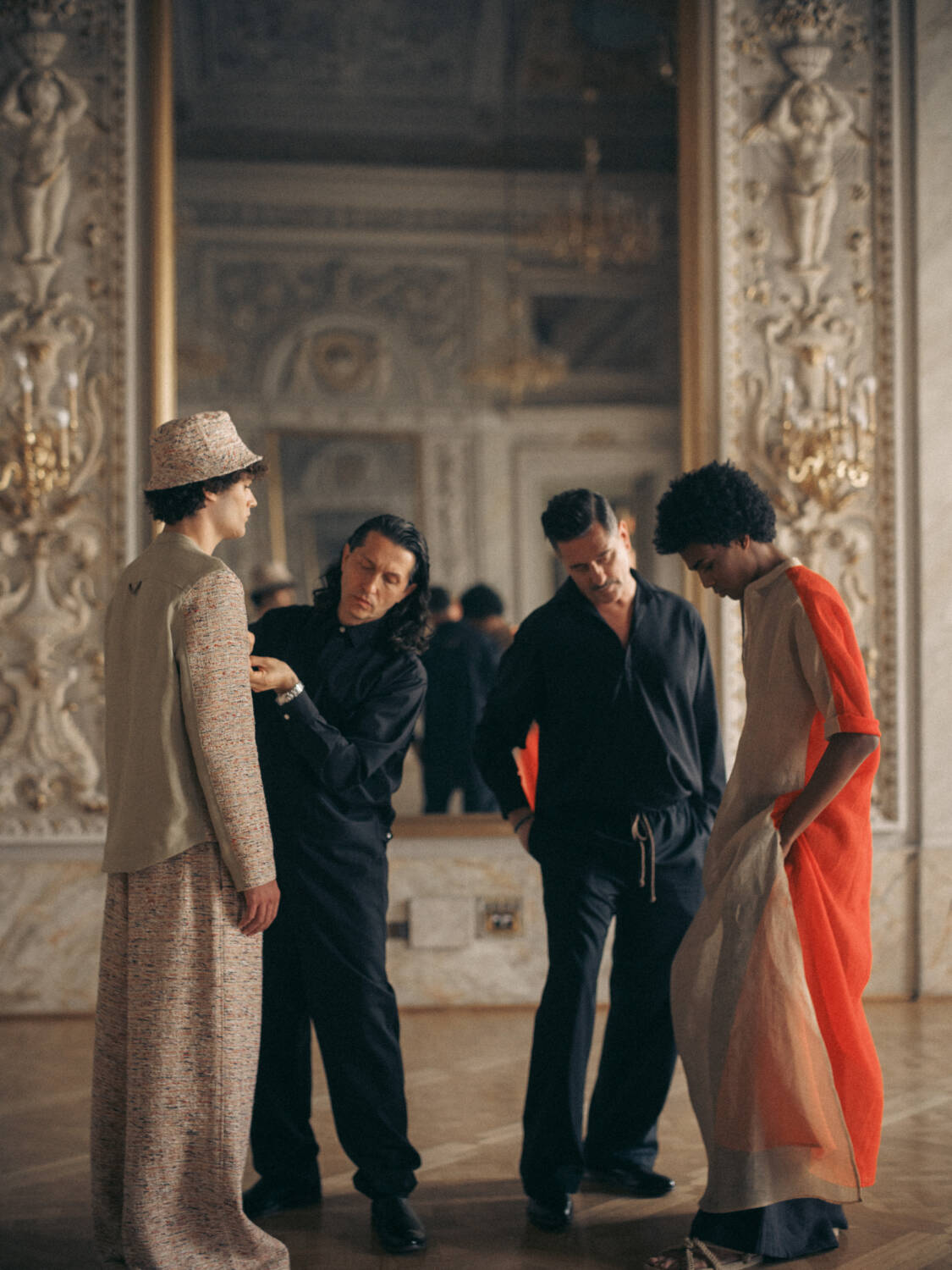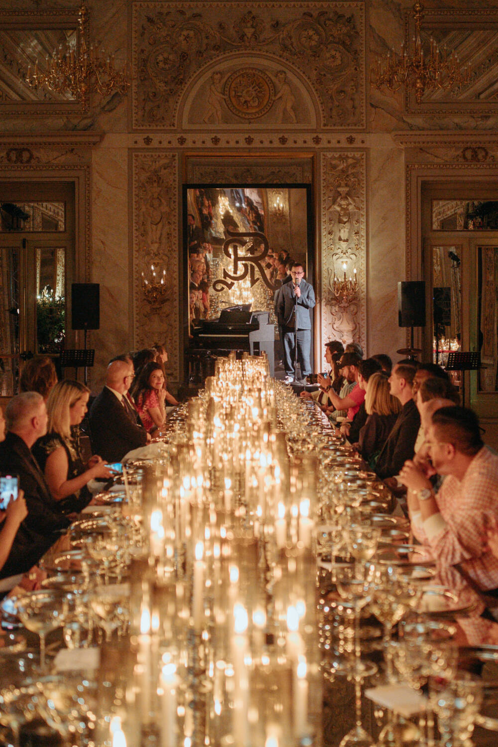 “There could have been a lot of designers we would’ve picked, but [the two] were specific to this property and to this city. There’s a classic-ness about them, but also a sense of innovation,” says Kolb. That creativity especially shone in the evening, as both brands dressed two models each in looks that suited the festive formal theme. For thesalting, it was the two-tone caftan as well as a sleek yet slouchy jumpsuit while Zankov offered up a creative knit gown as well as separates that felt equally as appropriate for the occasion. Following a traditional saber champagne ritual — a St. Regis classic that happens at every location — guests sat down at a candlelit and mirrored dinner table. Glittery and glamorous, the setup nodded to Astor’s history of hosting midnight suppers that brought together creatives in unexpected ways that can lead to long term benefits for all. That’s precisely the intention says Nichols, “We’re always thinking how can we help brands? And it’s bringing them into the fold both through these dinners, stocking them in our pop-ups and more. Supporting artists is in our blood.”