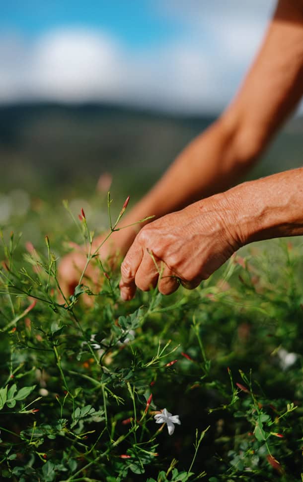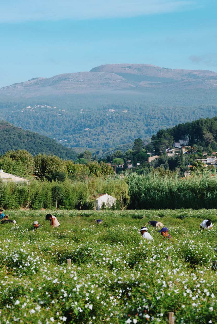 The town rises in the hills above the glamorous Riviera, far from the pull of the Mediterranean but surrounded by something far more intoxicating— endless fields of jasmine, May rose, tuberose, and lavender. You smell it before you even see it, that unmistakable hit of jasmine that floods the car the second you turn into the Mul family farm.