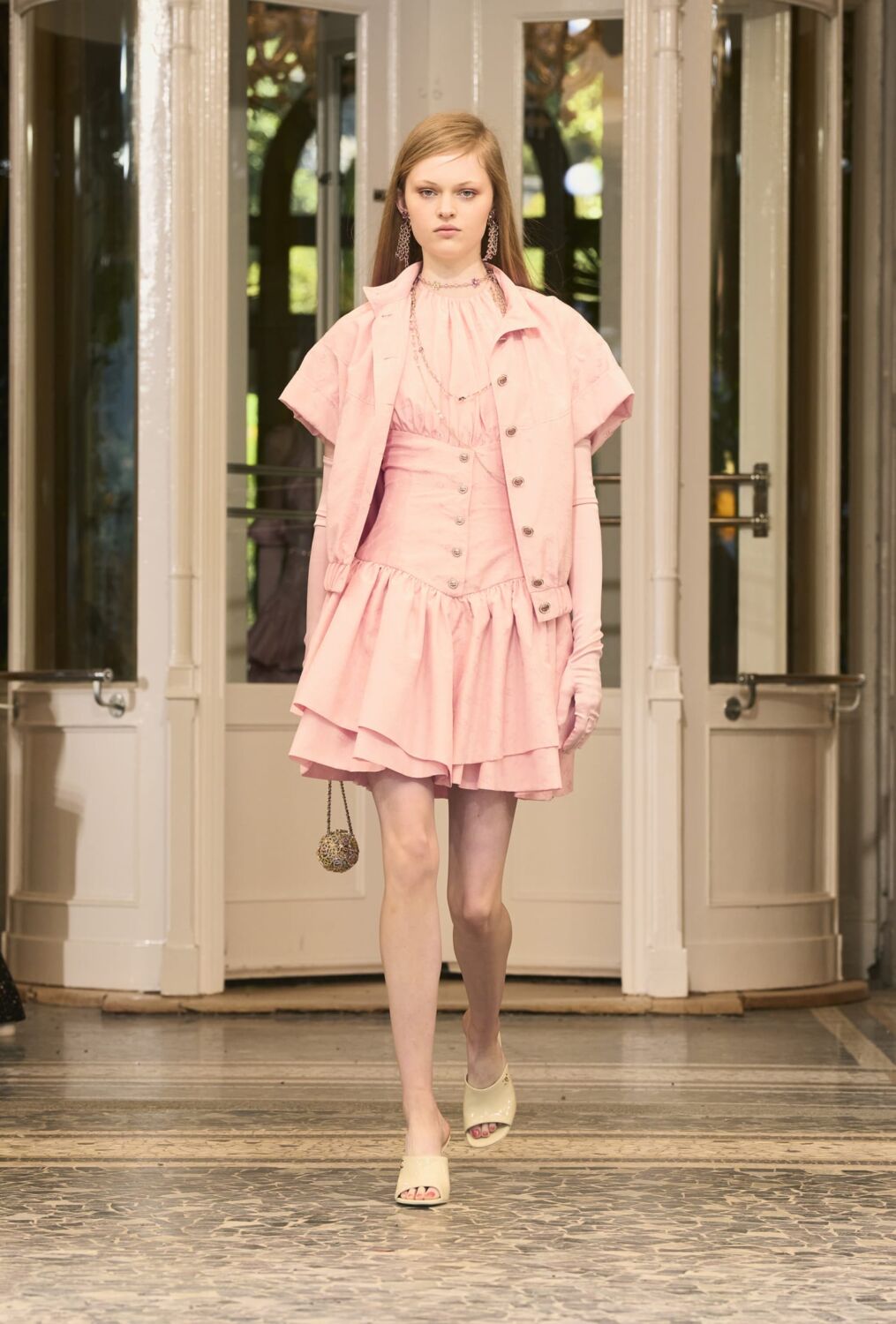 They focussed on the kind of sun-kissed pastels and timeless, carefree elegance that is as much a signature of Chanel as tweed jackets and quilted bags. There were plenty of those on show in a collection dedicated to OOO looks. Chanel ambassador Sofia Coppola, set the mood with a short film set in the hotel, which she described as “about that version of yourself when you get away, when you may be different from how you are in real life”. This was the vacation wardrobe of dreams.