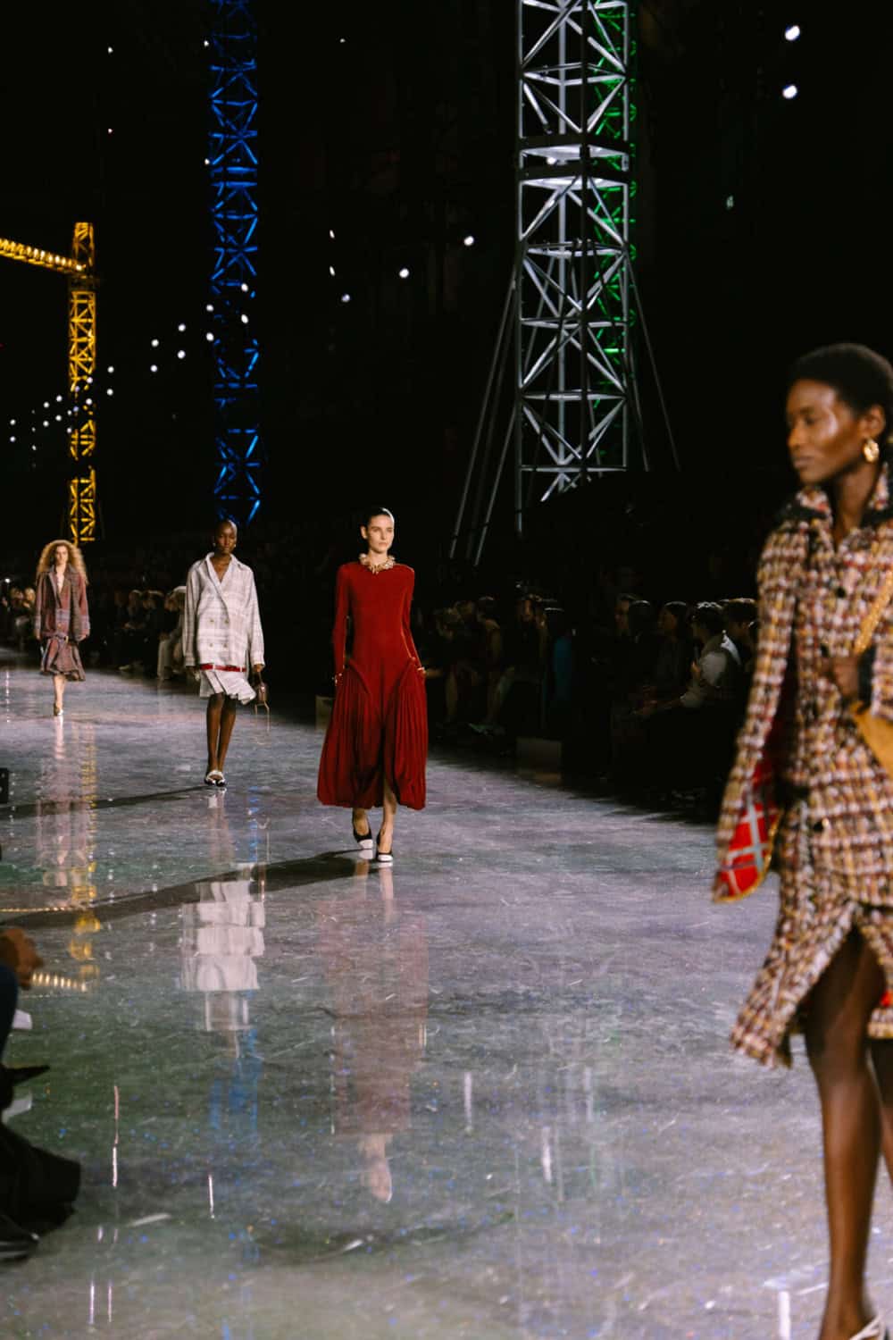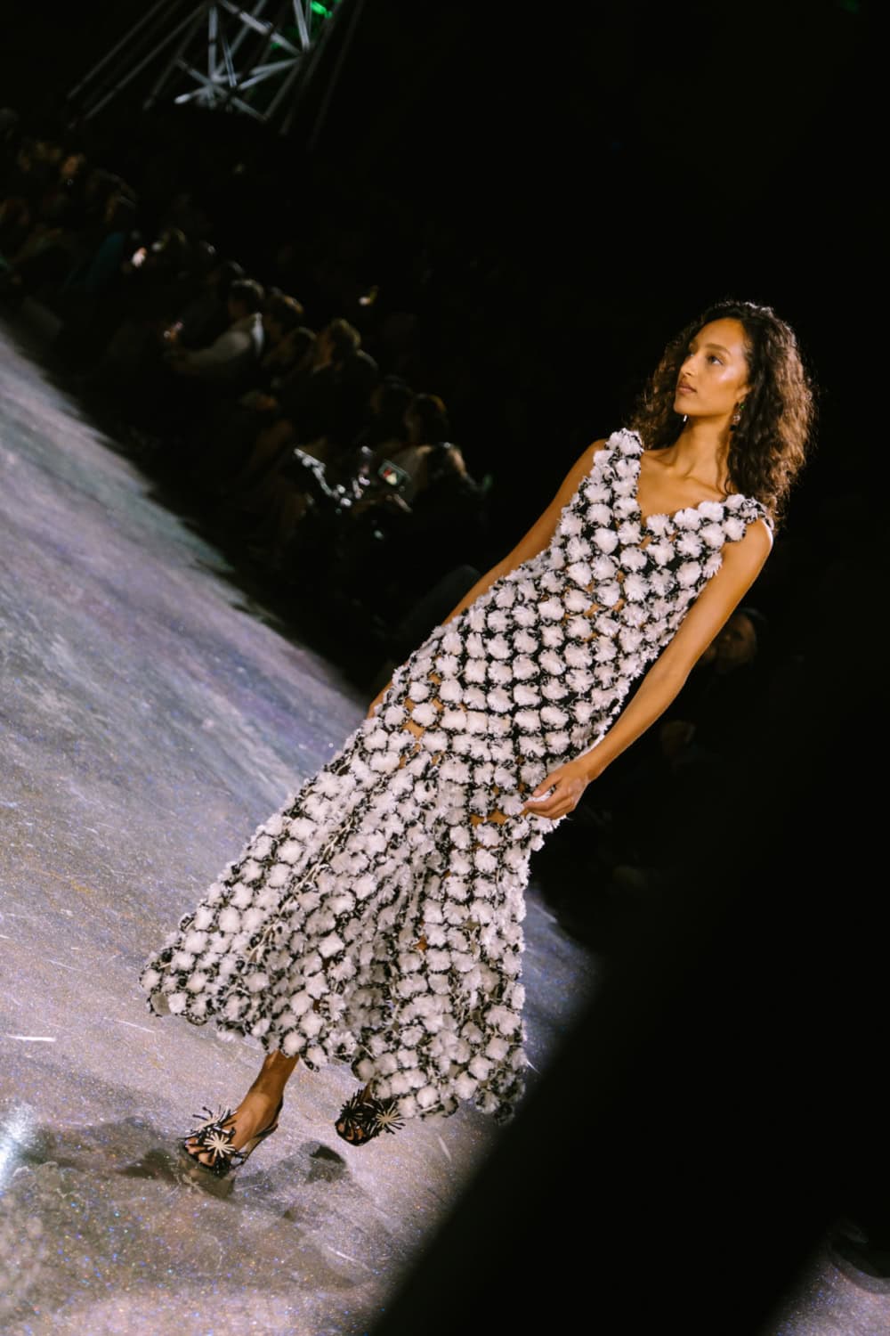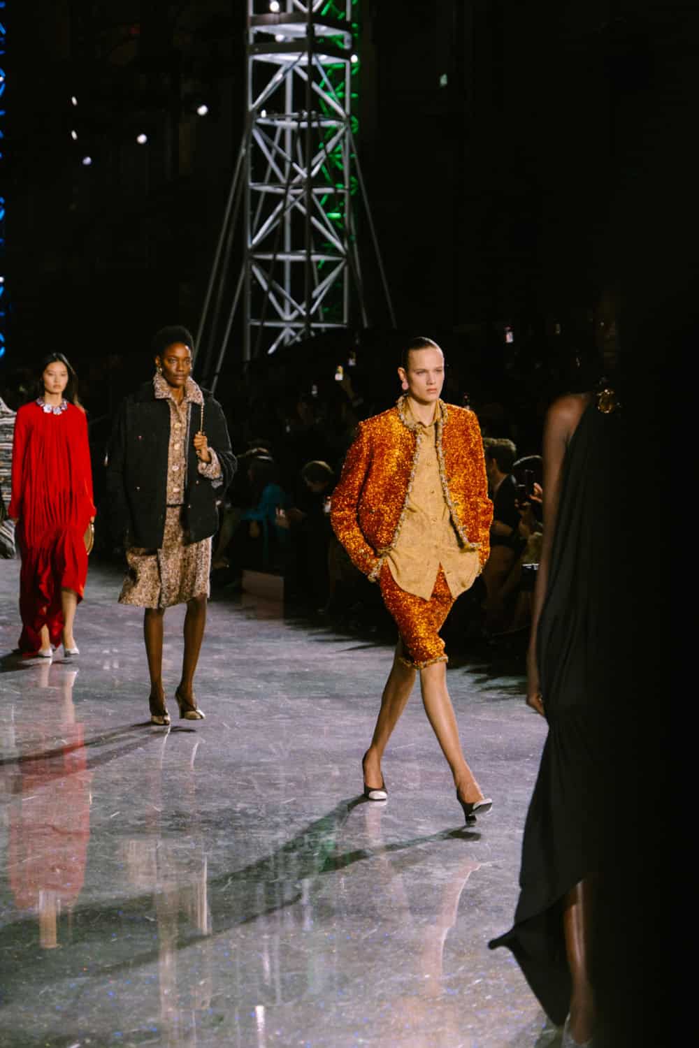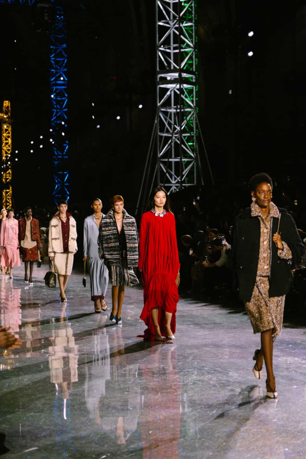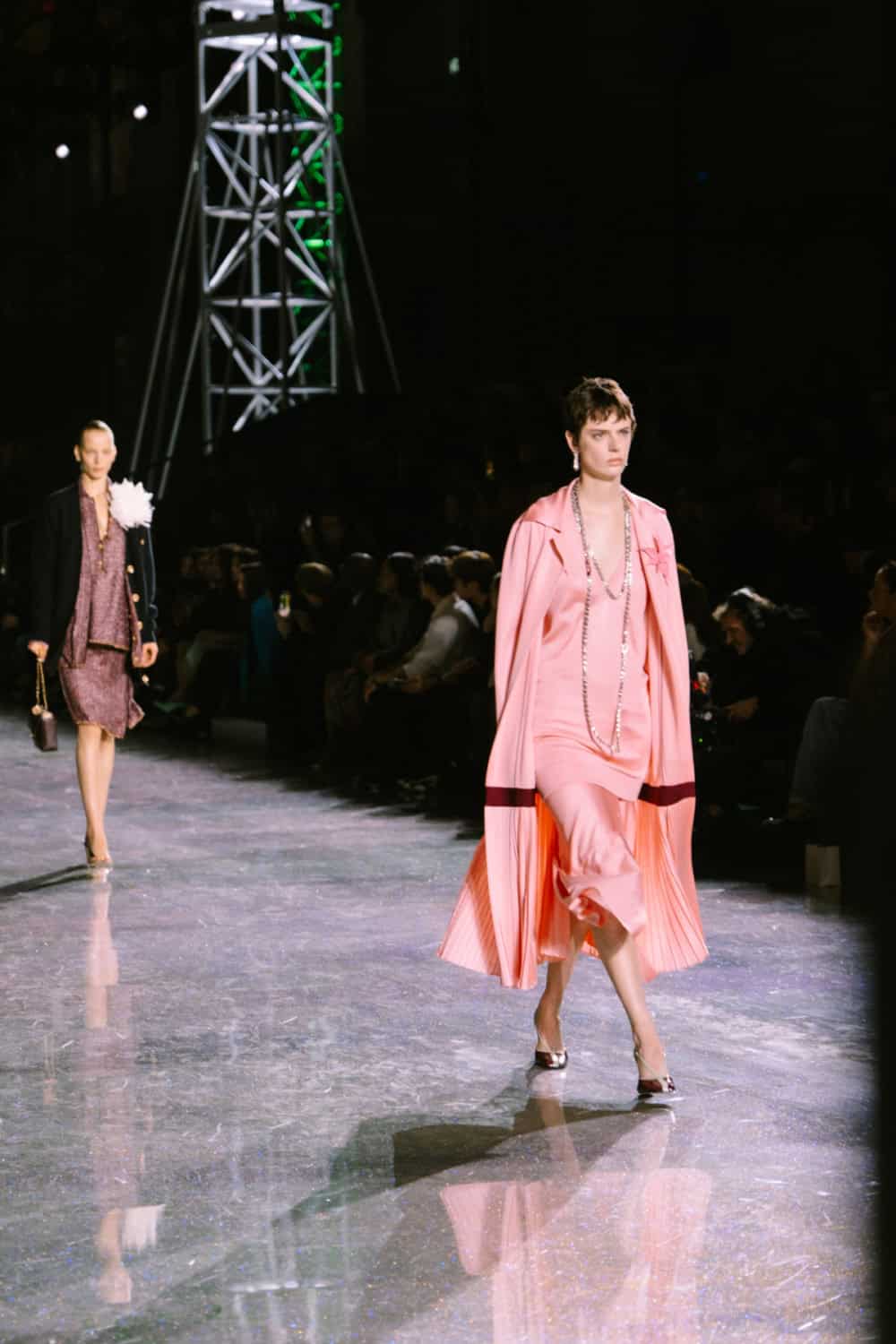 Speaking of social media, Monday night’s show offered two moments. The first was the holographic hair, a dazzling effect that was hinted at by the sparkling floor of the venue. It’ll be interesting to see who dares to recreate that style. The second came courtesy of a musical break as Lady Gaga’s “Just Dance” played, much to the delight of the front row which included Jennie, Margot Robbie, Teyana Taylor, and more. As Blazy came out to yet another roar of approval, it’s safe to say he’s laid down quite the foundation for his future at Chanel.