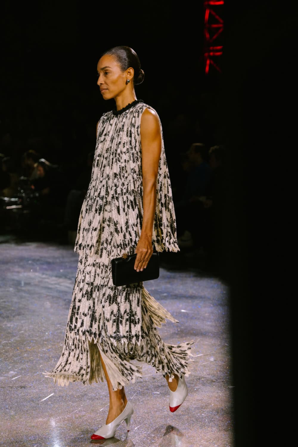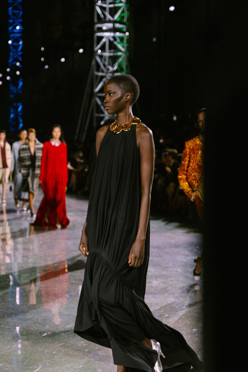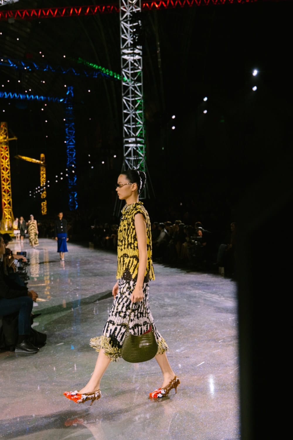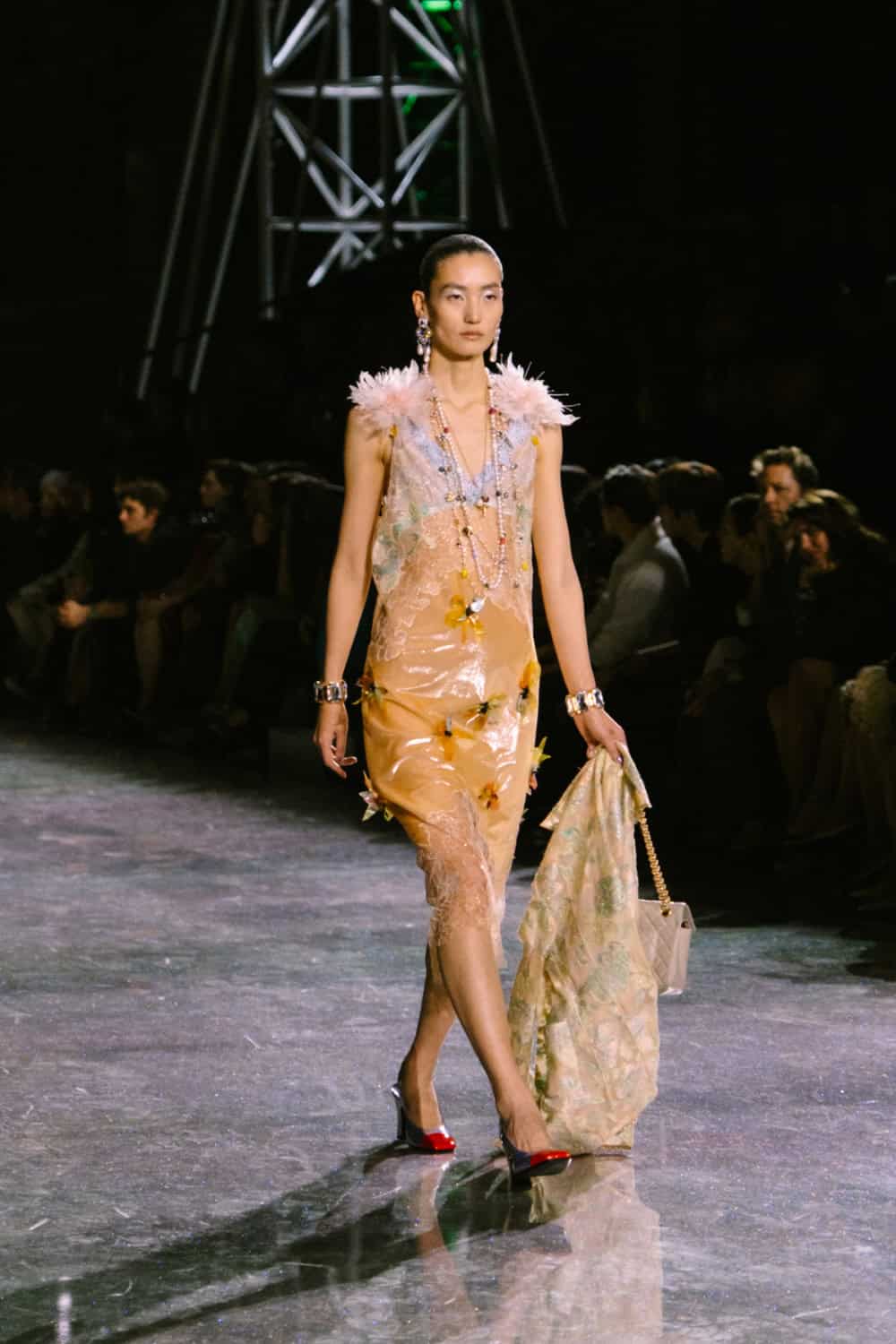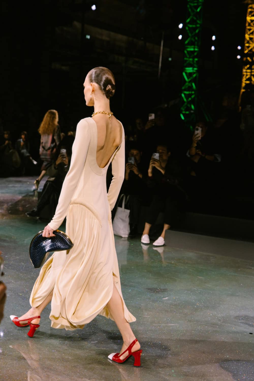 Speaking of social media, Monday night’s show offered two moments. The first was the holographic hair, a dazzling effect that was hinted at by the sparkling floor of the venue. It’ll be interesting to see who dares to recreate that style. The second came courtesy of a musical break as Lady Gaga’s “Just Dance” played, much to the delight of the front row which included Jennie, Margot Robbie, Teyana Taylor, and more. As Blazy came out to yet another roar of approval, it’s safe to say he’s laid down quite the foundation for his future at Chanel.