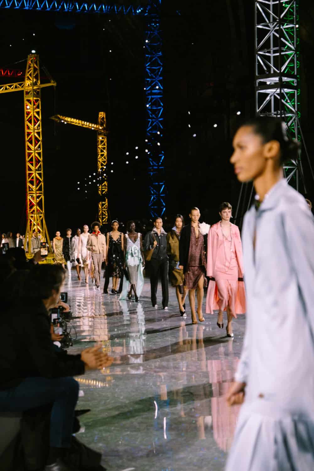 Held at the Grand Palais, gone were the planets and galaxies that decorated the space last season. Instead, the scenery was replaced with primary hued construction cranes. If spring 2026 was meant to reach for the moon and stars, this time around it’s a sense of let’s get to work and lay down the structures to ensure these lofty dreams become a reality. Of course, there was plenty of imagination too, as seen in the sparkly, holographic floor.