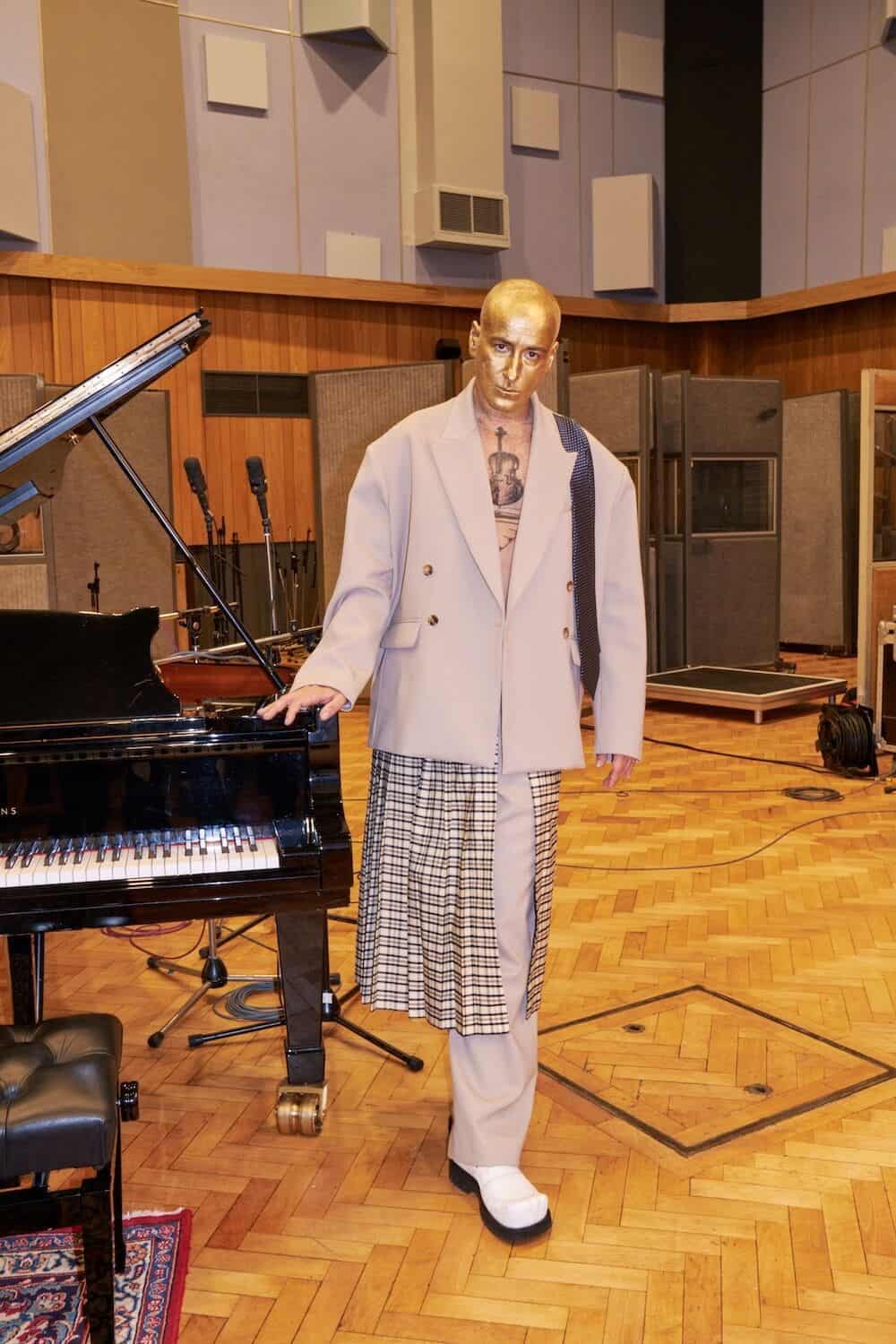 Jeffrey also used the sonic experience to guide his creative process, allowing the melodies of songs recorded at Abbey Road to lead his pen in his initial sketches. “If these walls could talk,” he muses, considering the myriads of stories and iconic moments that have unfolded within the historic recording studio. “The most amazing albums have been created here, and it’s because of the space being very open to anything, like famously people have brought fucking like animals in here, or mad set design, or even spiritual leaders. They just are like, okay, the label wants this, and Abbey Road makes that happen.”