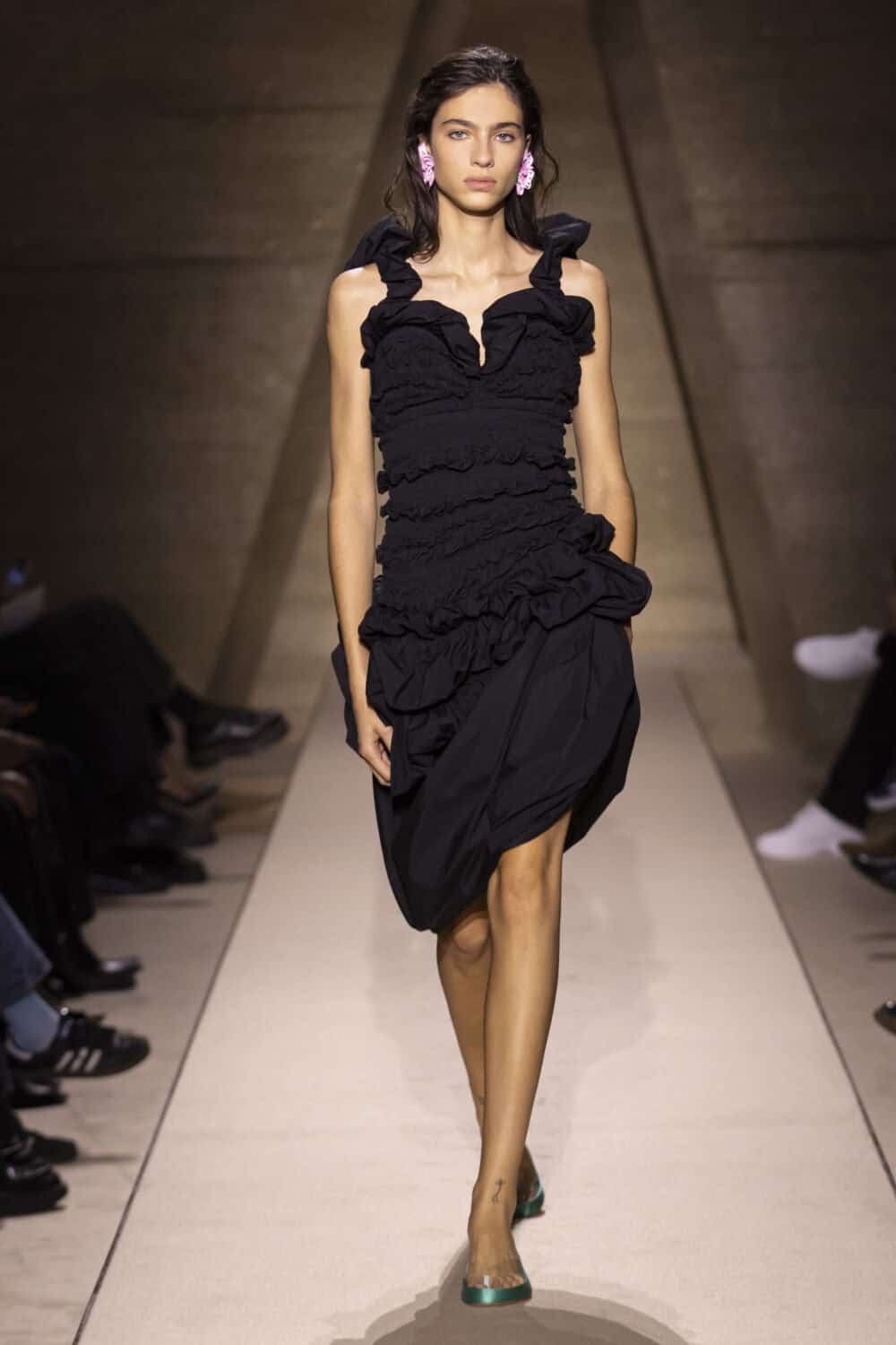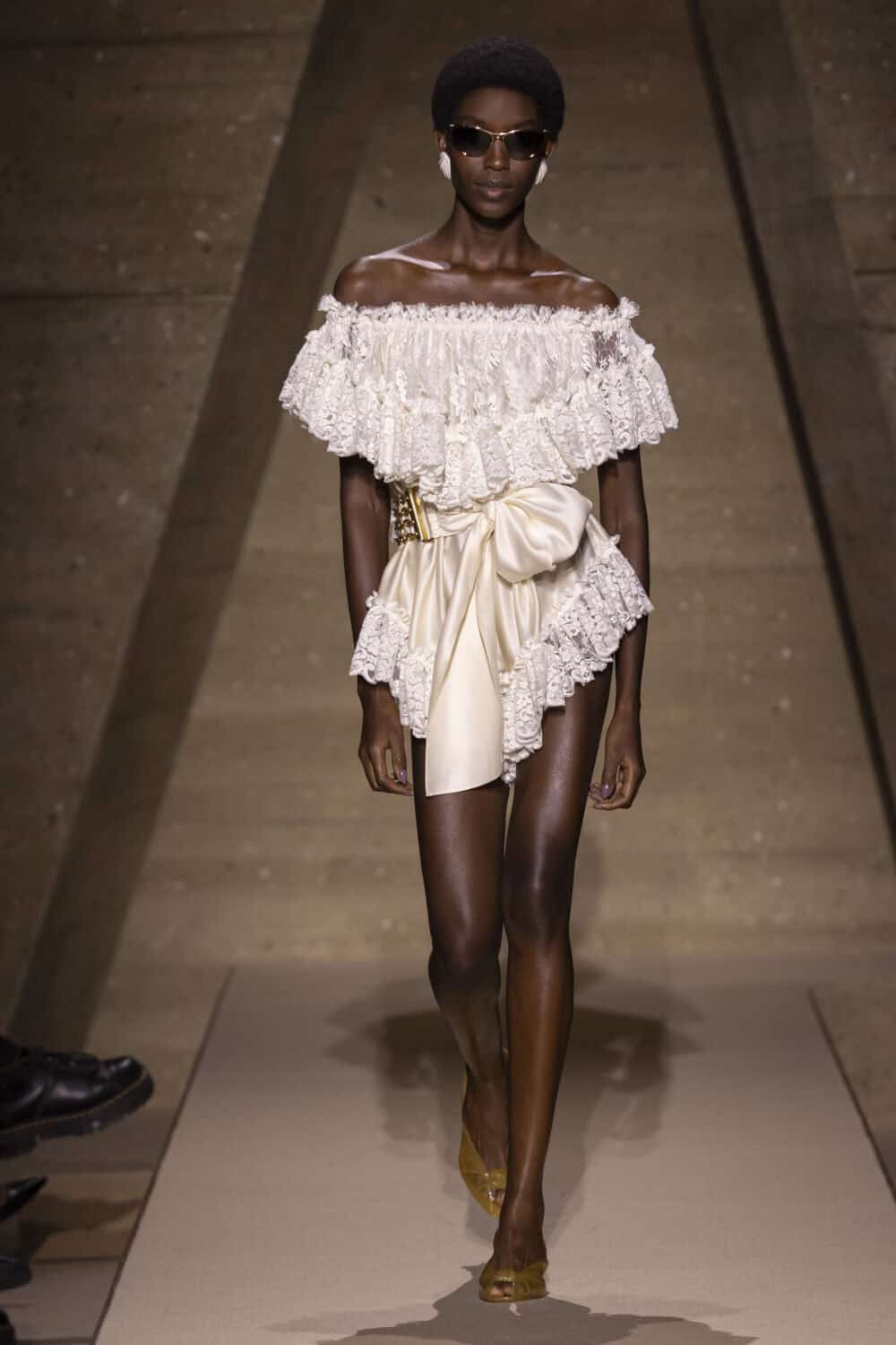 The Chloé girl is evolving. There’s more to her than boho. For SS26, Chemena Kamali showed she can wear archive florals, draped and swagged into curve caressing, 1950s-inspired dresses. The designer keyed into the innate femininity of the house, going right back to its earliest 1950s silhouettes for inspiration.