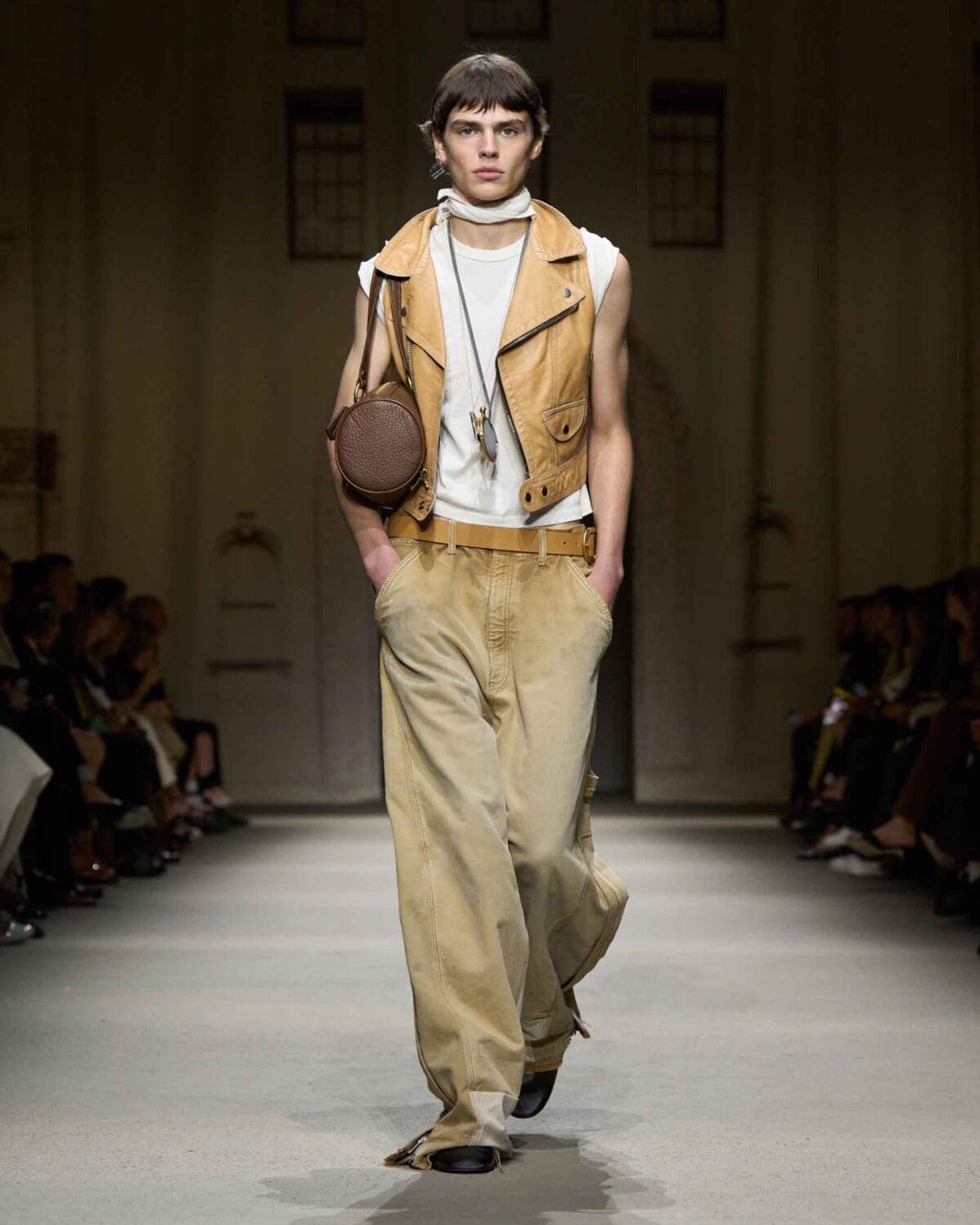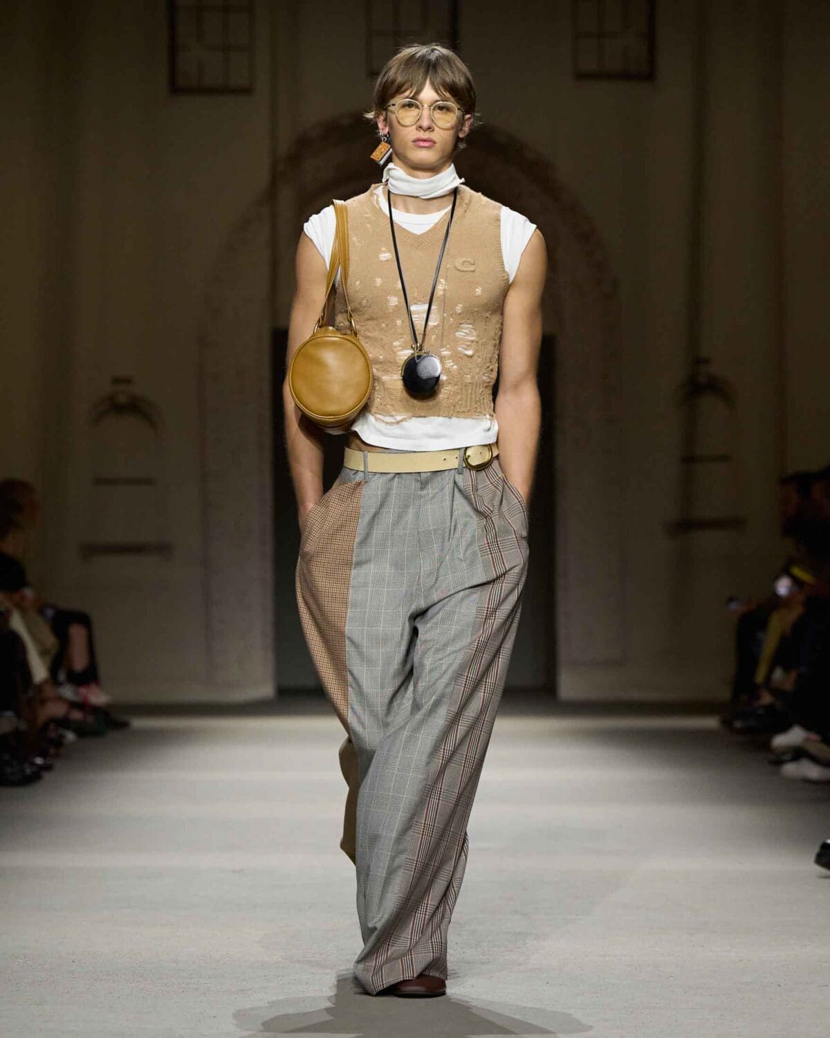 For Coach’s Spring 2026 collection, Stuart Vevers found beauty in the wear and tear of New York City and how it revives itself day after day. His show notes referenced the appeal of the worn patina of beloved buildings, which was replicated in the set: large-scale canvases of photographs of the city, intentionally faded and meticulously arranged by Stefan Beckman.