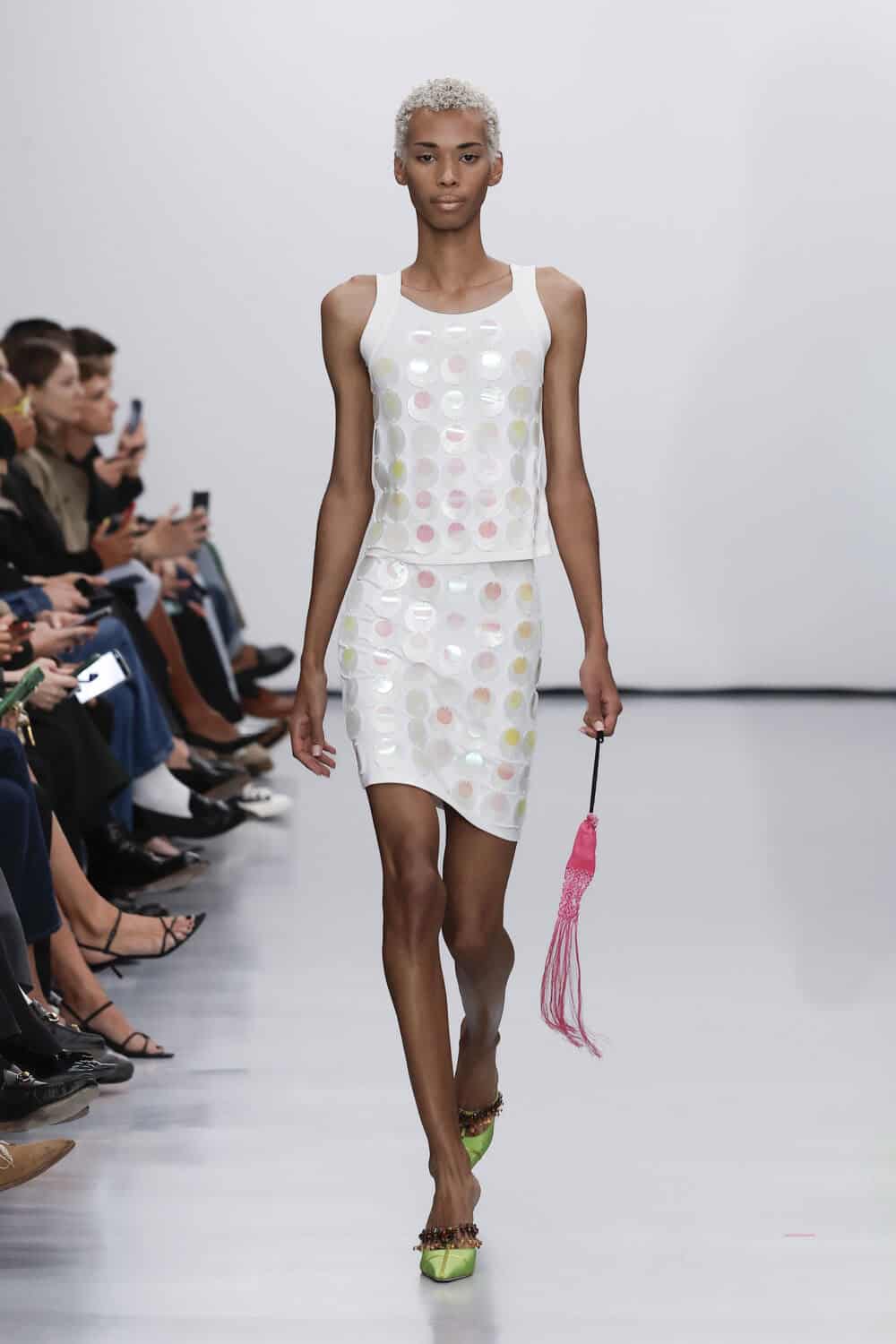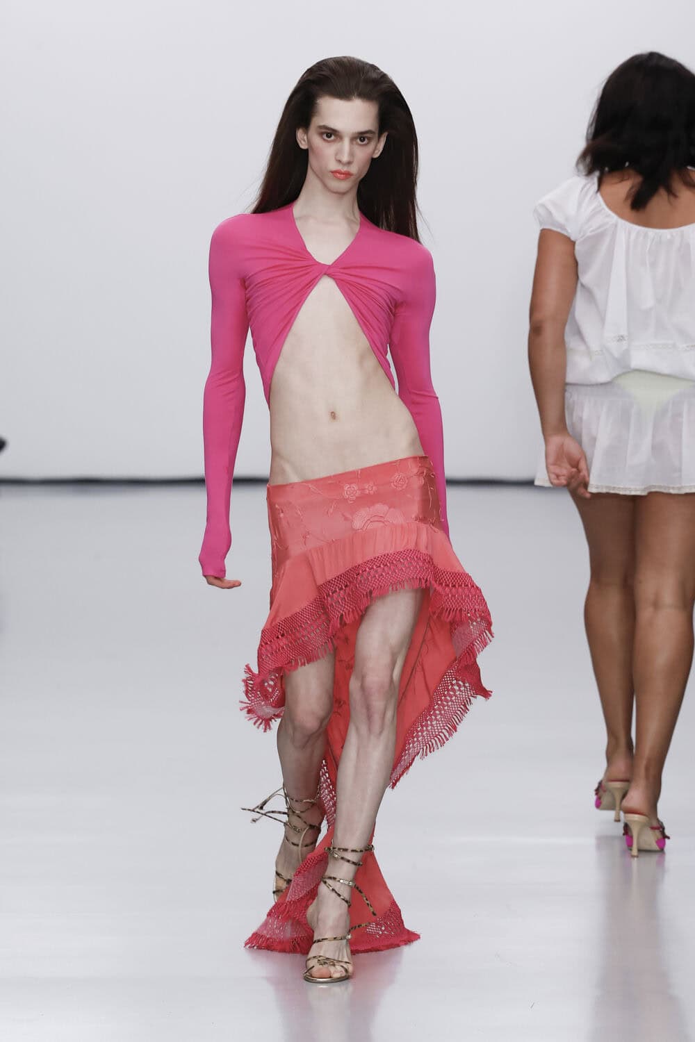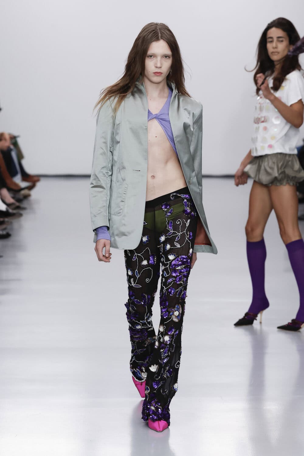 But beneath the fizz, there was heart. “Rather than proposing a hypothetical escape to get us out of here, I forced myself to sit in the now, to make sense of it when nothing makes sense anymore,” the American designer wrote in his show notes. “The only way out of this is through.” It was a rallying cry to stay grounded amid the chaos of the world right now. Pop, he reminded us, is not low brow – it’s survival, endlessly reconstituting itself. And here, too, it became protection. “This one, and every one, is for my Dolls!” he wrote, and with his viral ‘Protect the Dolls’ tees having raised over $600,000 for Trans Lifeline so far this year, Ives proved himself to be a designer of fashion as solidarity, as community, as resistance.