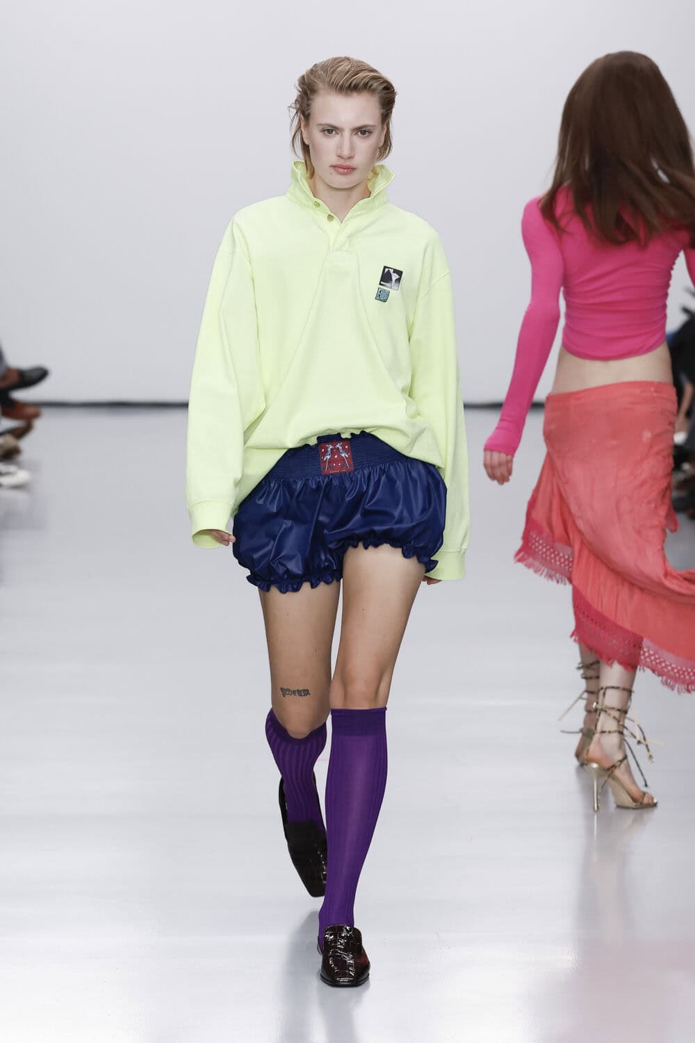 Bold and bright was the order of the day: acid rugby shirts, uranium-glass greens, Tab Soda pinks and Club Tropicana orange fused into house codes that screamed joy in high volume. Everything hummed with rigorous, hardcore handwork, turning everyday archetypes into luminous, defiant armour.
