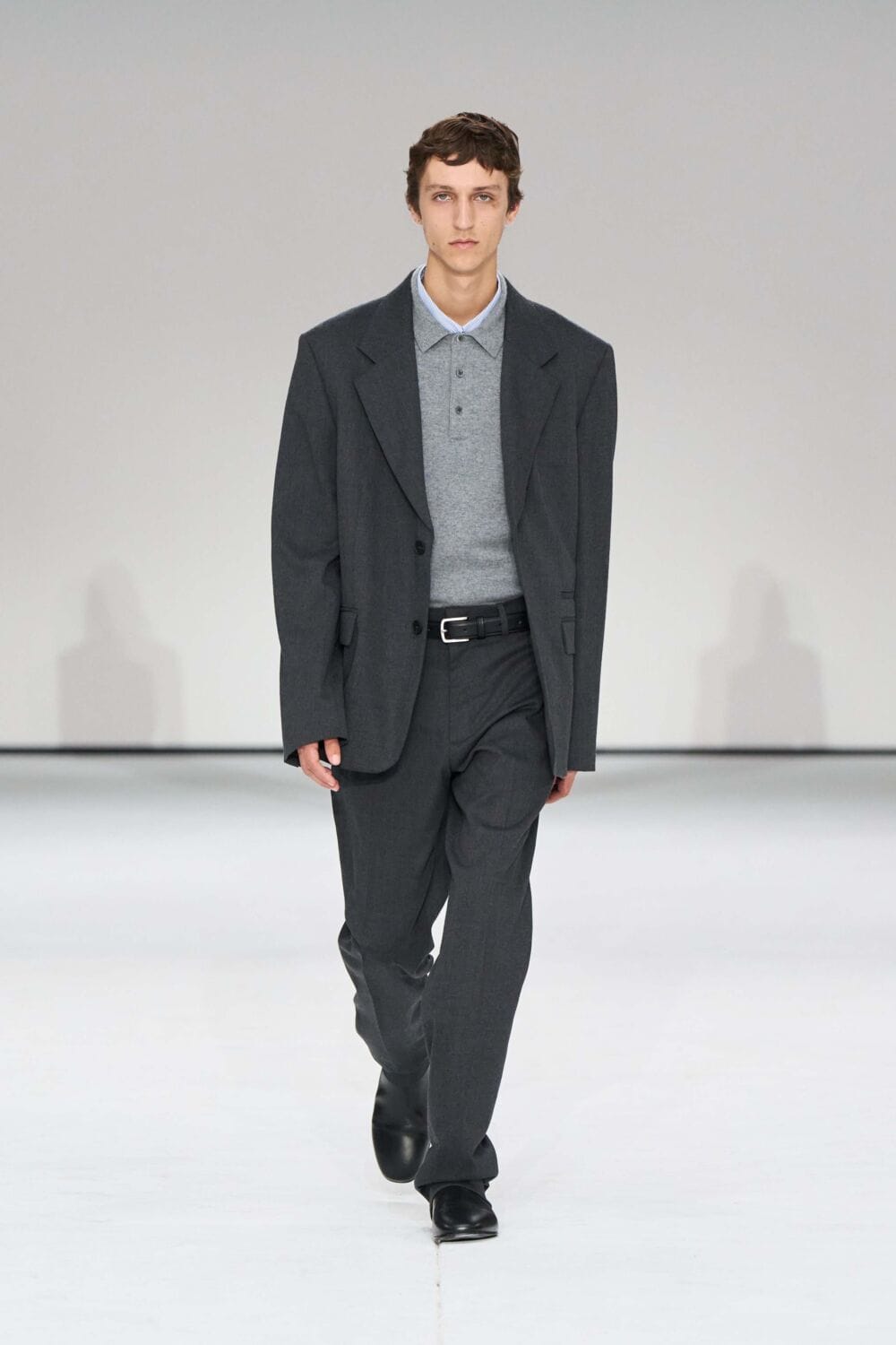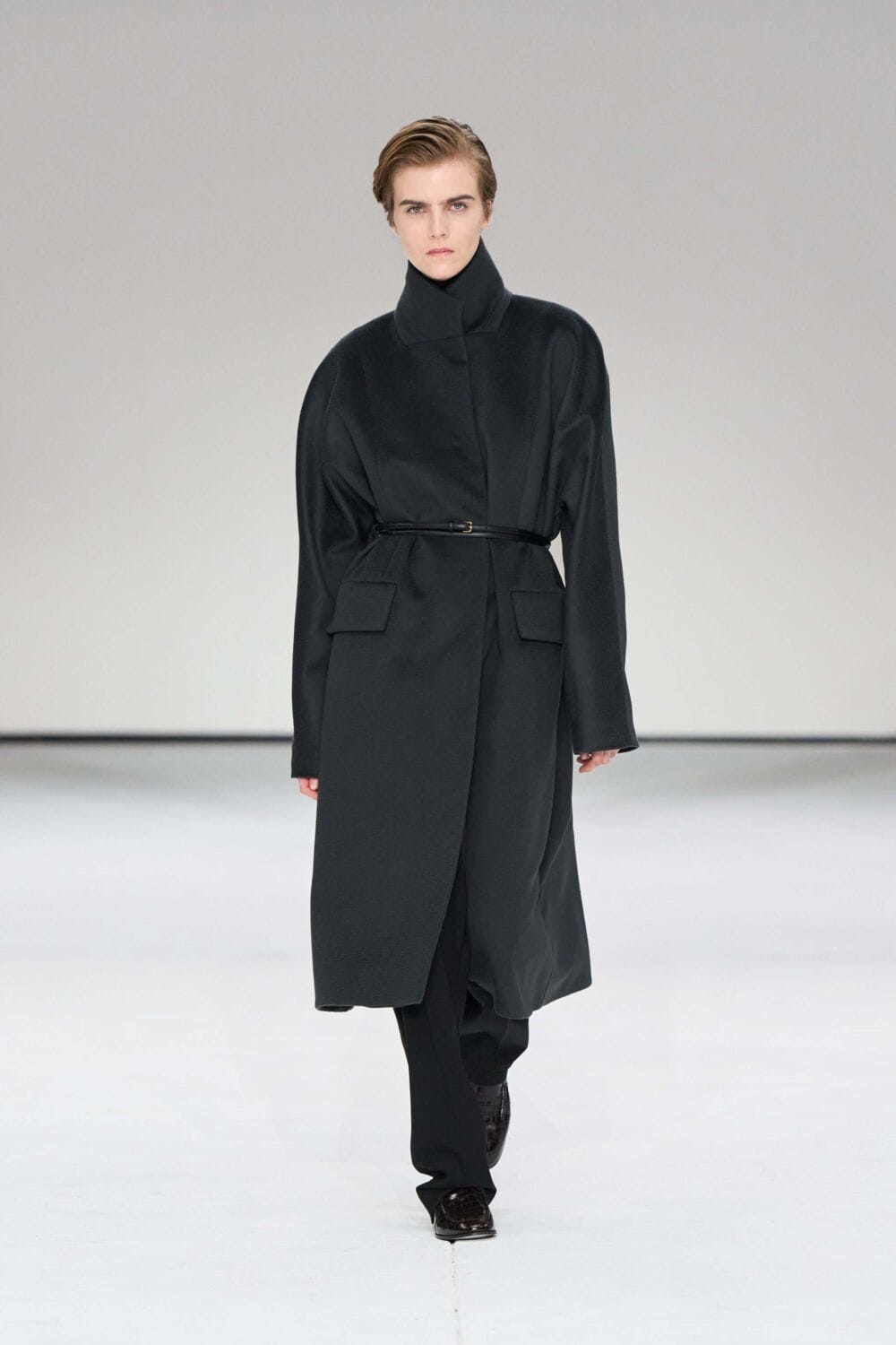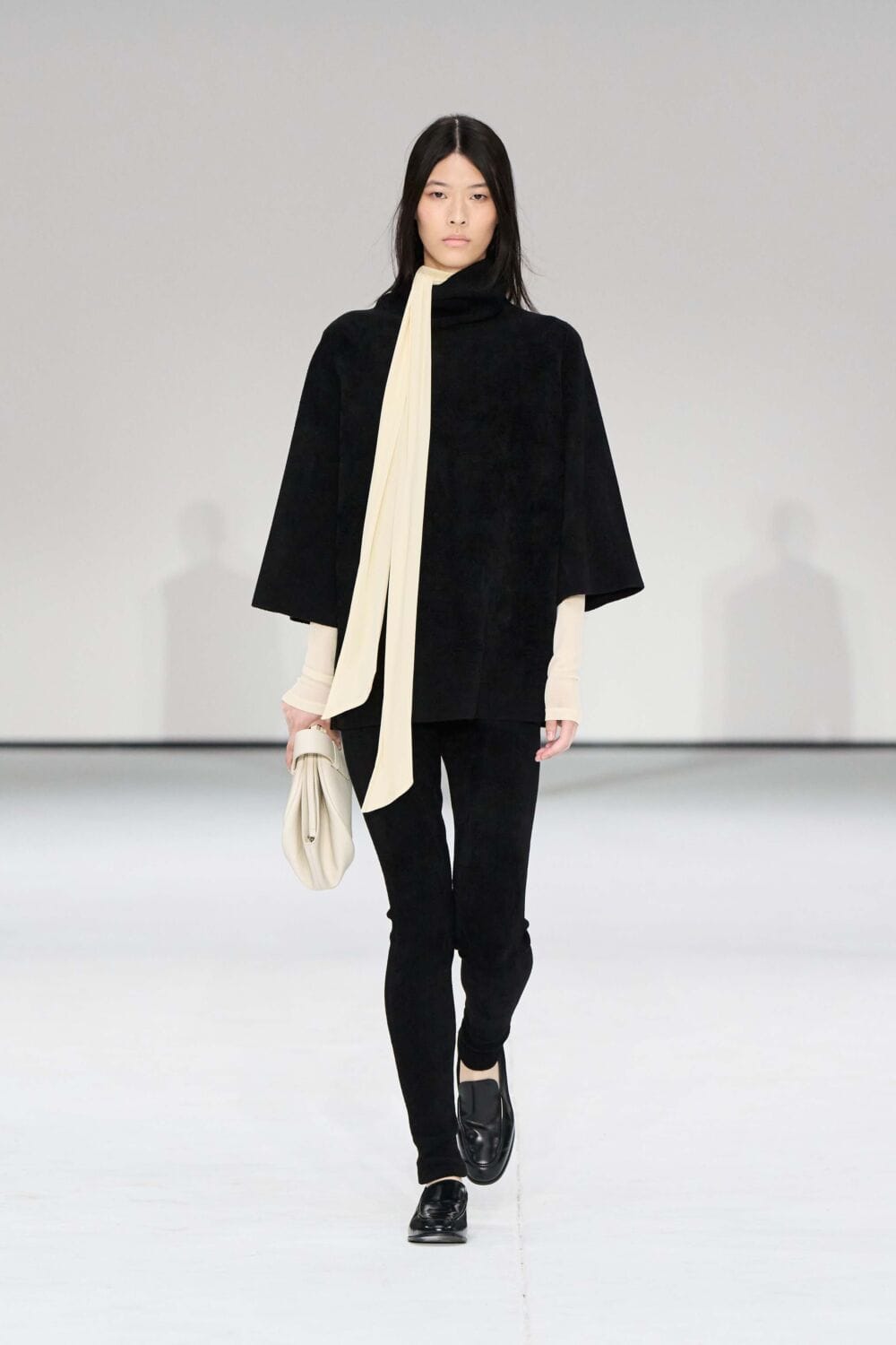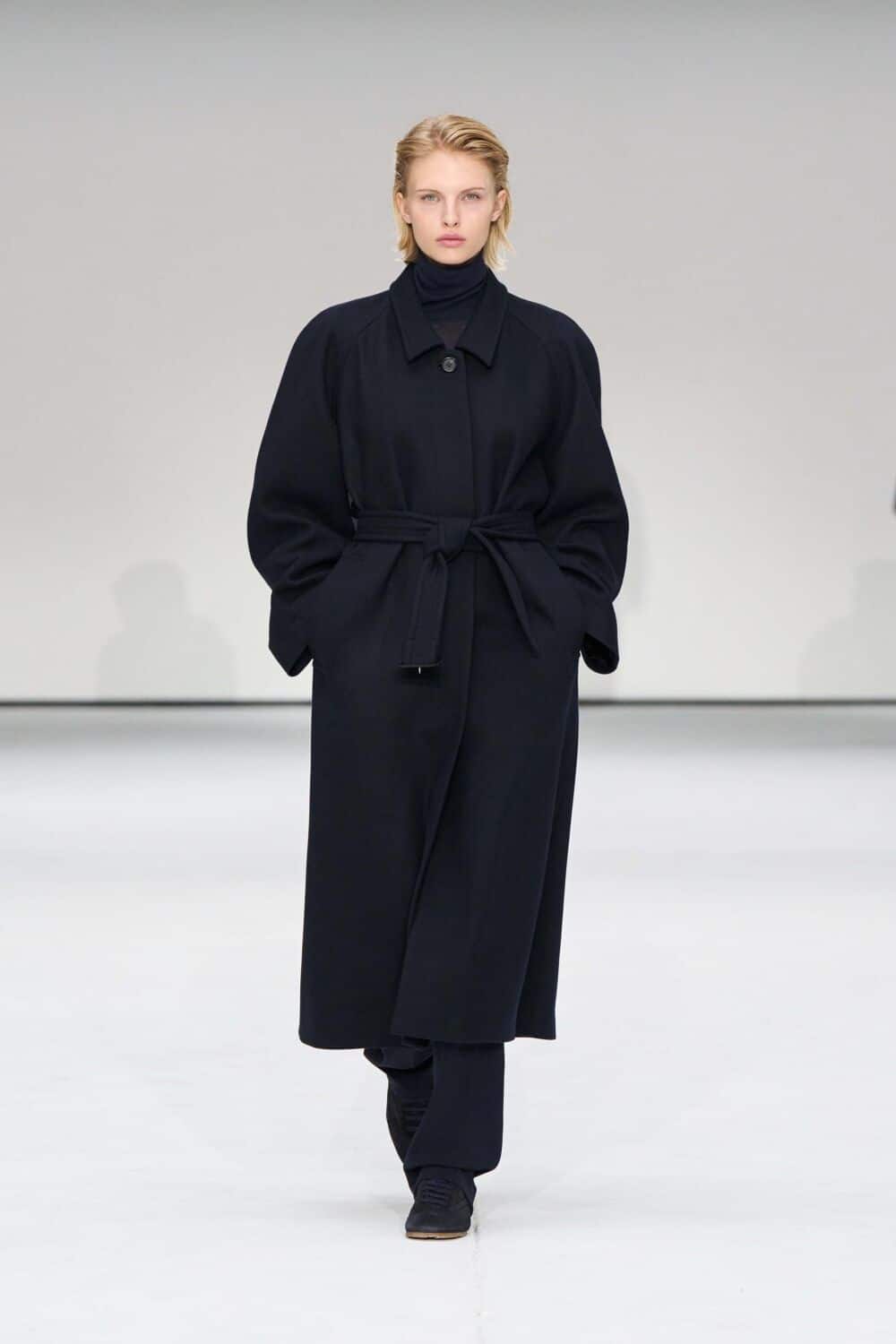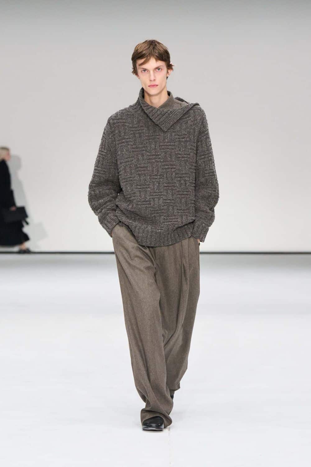 For mens, oversized tailoring paired with tonal knits and thoughtful layering reigned supreme, all grounded with practical accessories like baseball caps, fits-everything bags, and classic boots and sneakers. Of course, our eyes were on the outerwear, namely the floor-length double breasted wool coat, fur-collared leather bomber, and slouchy wool blazers.