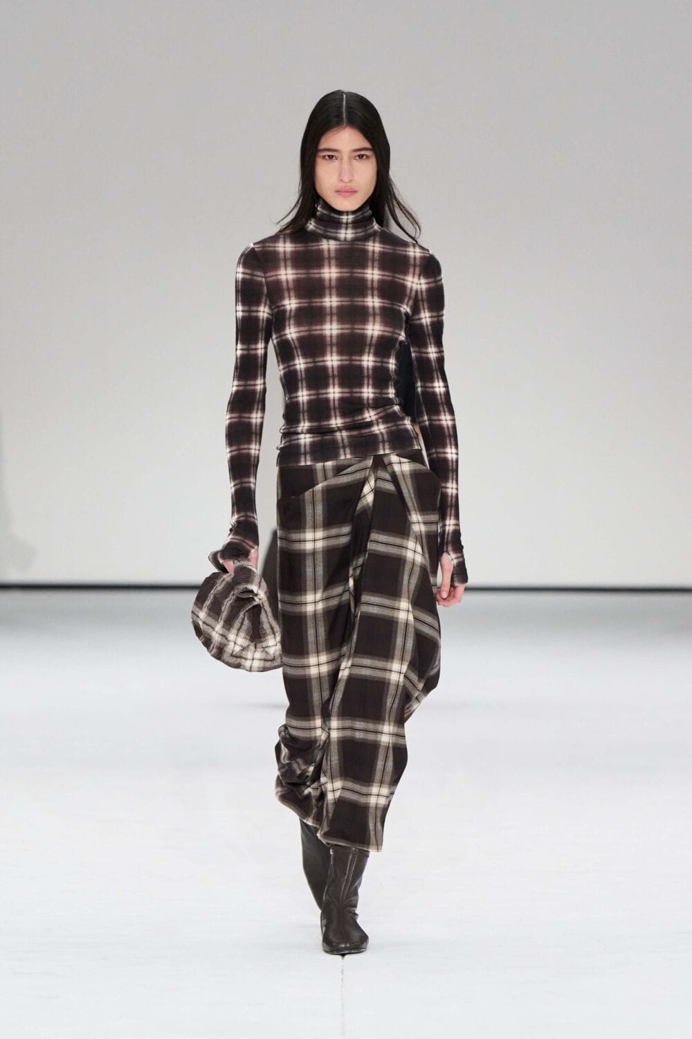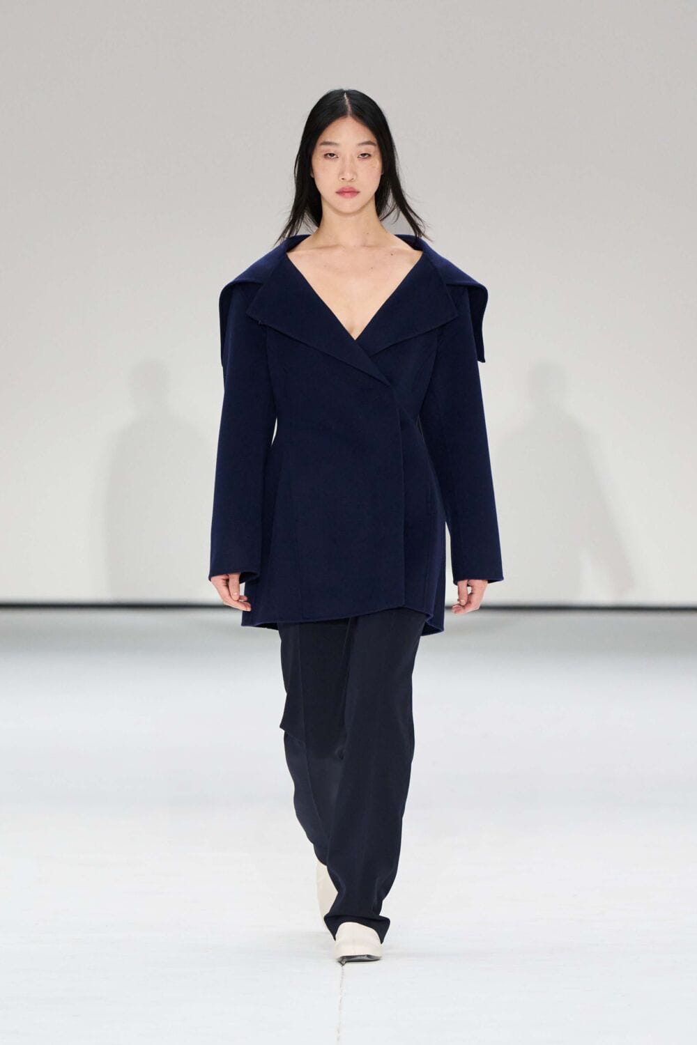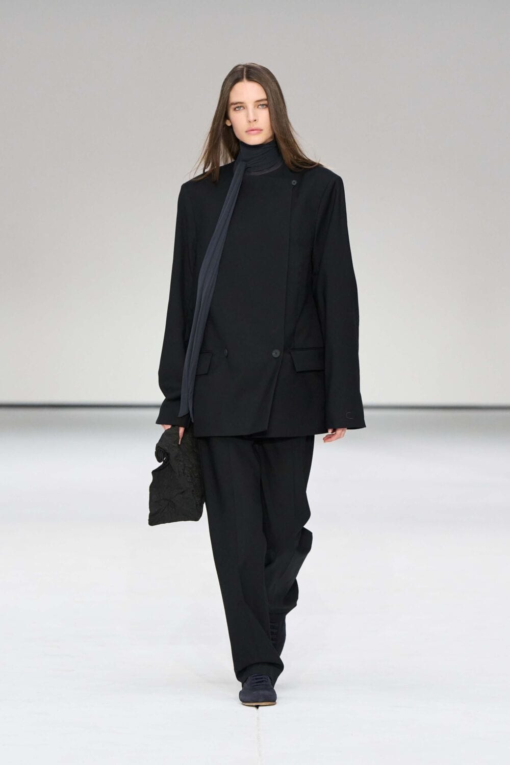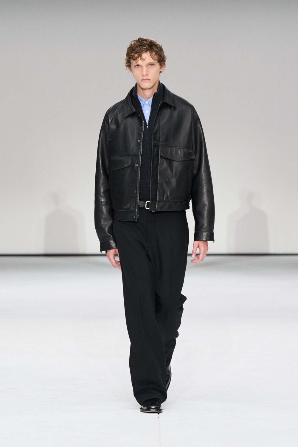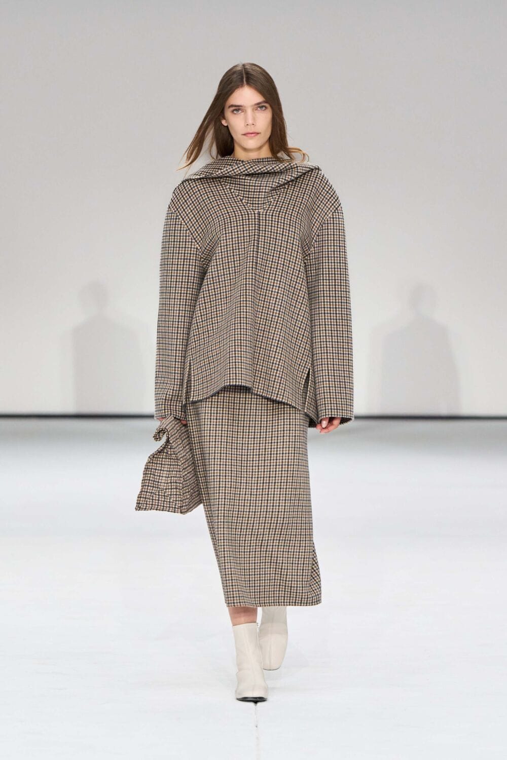For mens, oversized tailoring paired with tonal knits and thoughtful layering reigned supreme, all grounded with practical accessories like baseball caps, fits-everything bags, and classic boots and sneakers. Of course, our eyes were on the outerwear, namely the floor-length double breasted wool coat, fur-collared leather bomber, and slouchy wool blazers.