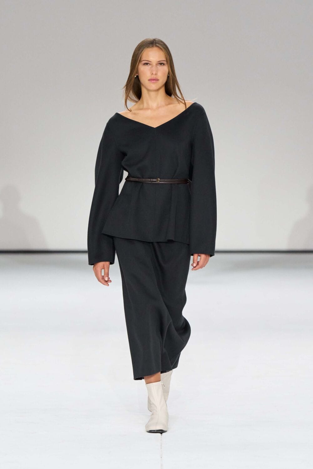 Inside the Greenpoint Terminal Warehouse along Brooklyn’s waterfront, the H&M-owned label presented classics with a twist against a pristine white backdrop, to a front row that included Lauryn Hill, Rosie Huntington-Whiteley, Naomi Watts, Christopher Briney, Jodie Turner-Smith, and more.