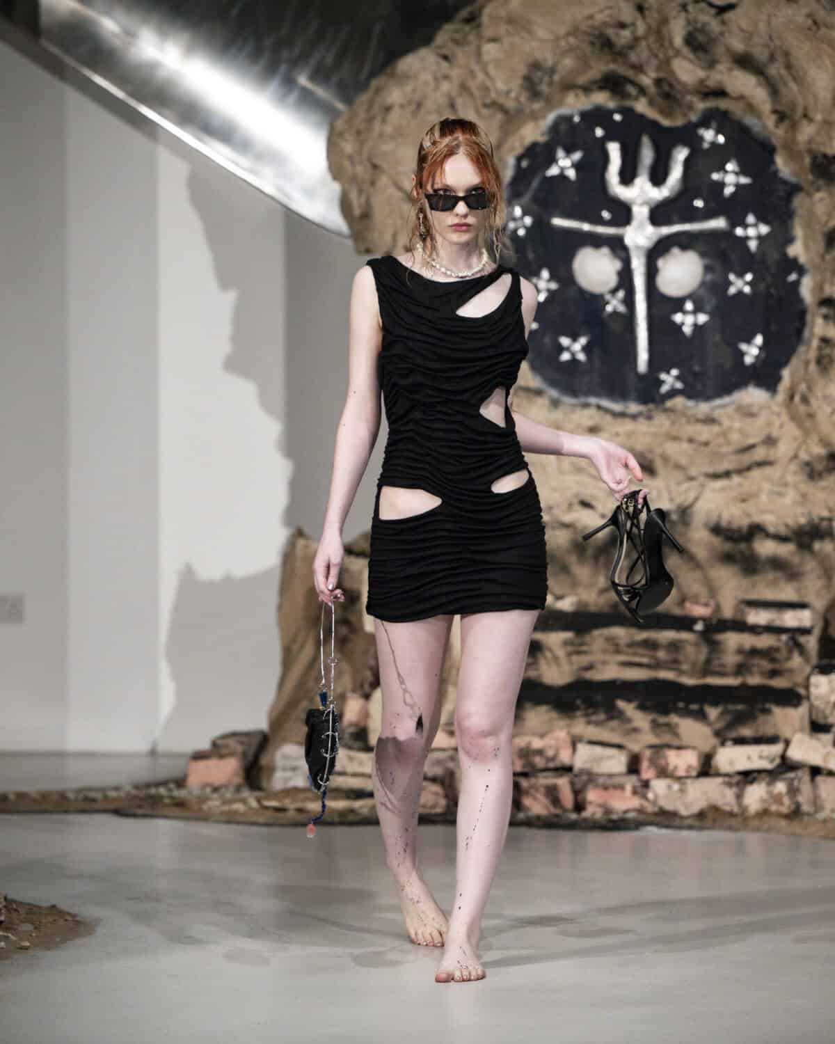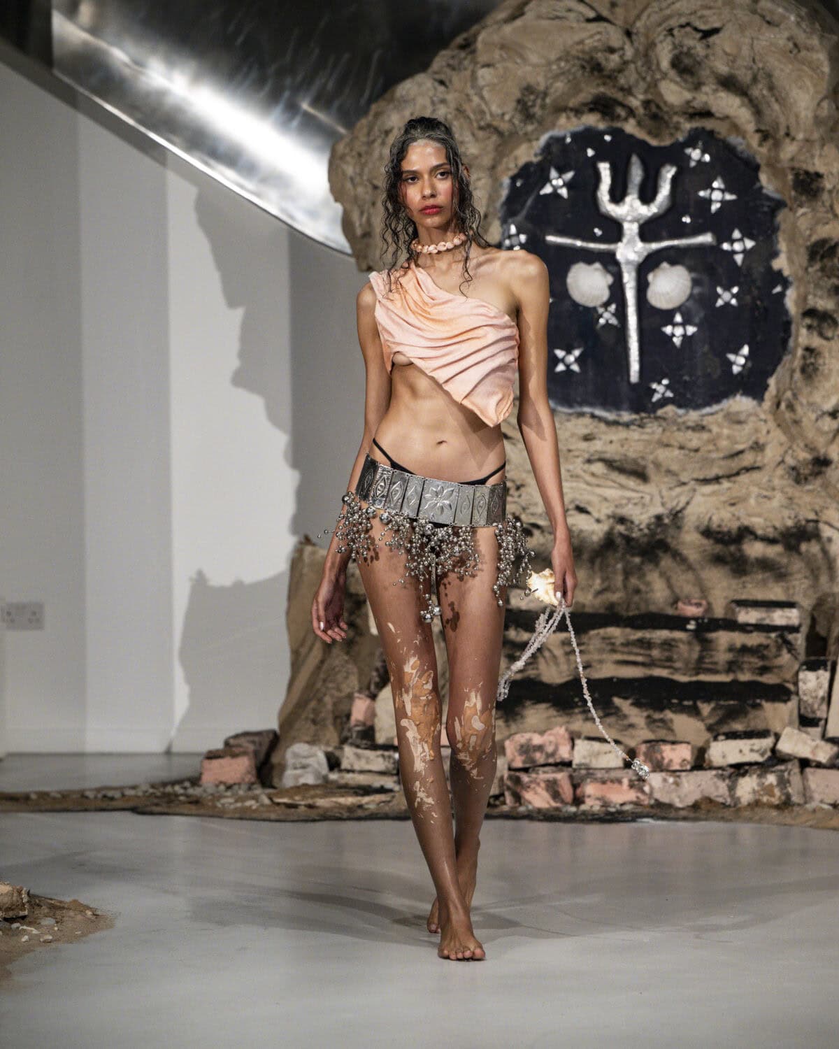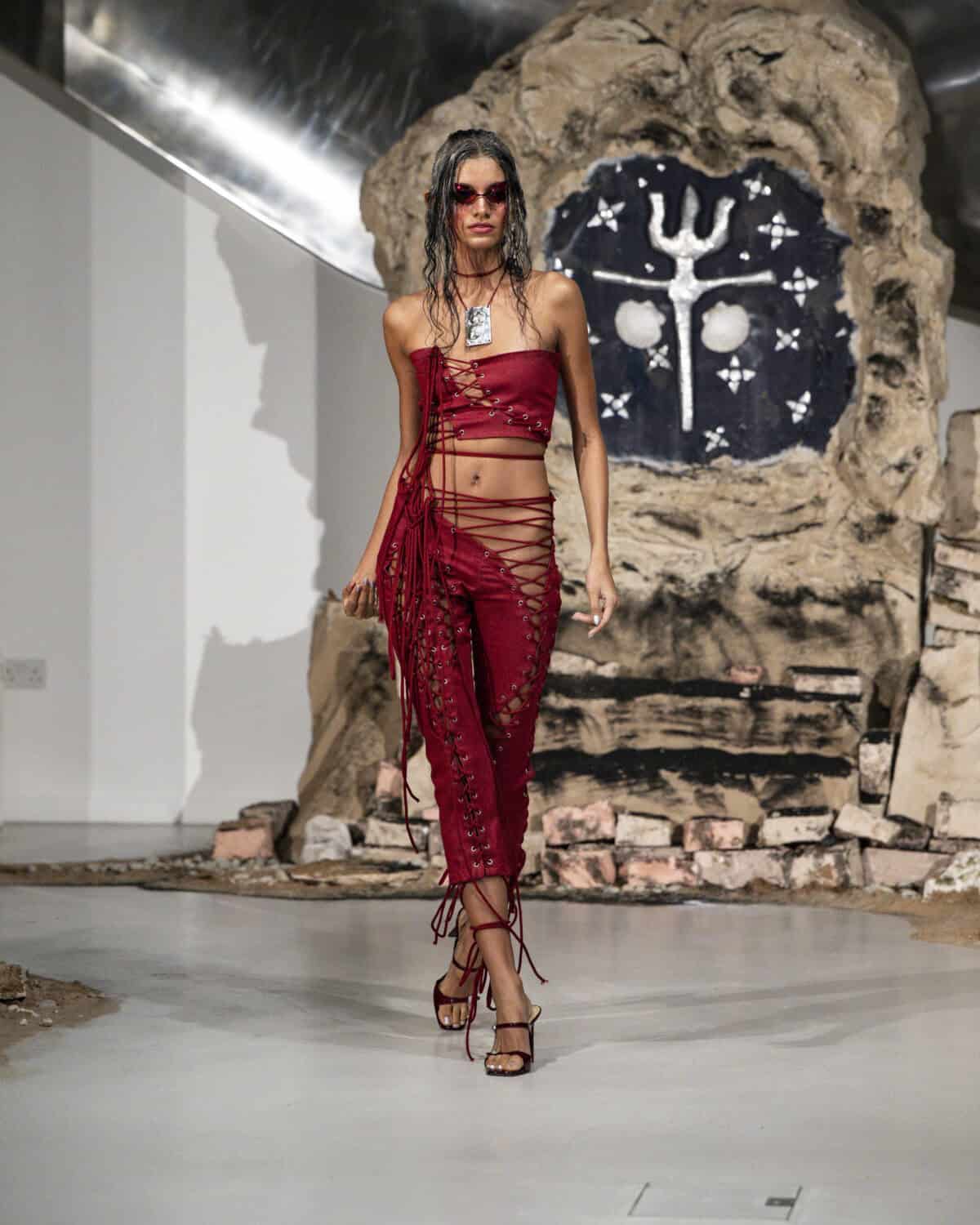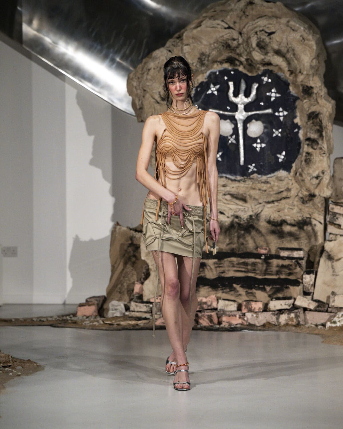 Elsewhere, there were ruched bodysuits, sheer trousers and jersey bandeaus styled with undone elegance. The overall mood was softer, a bit more casual, but still confident. Dipetsa isn’t abandoning its mythic roots – just making space for them in everyday life. And SS26 proves that a goddess can do it all, even in flats.