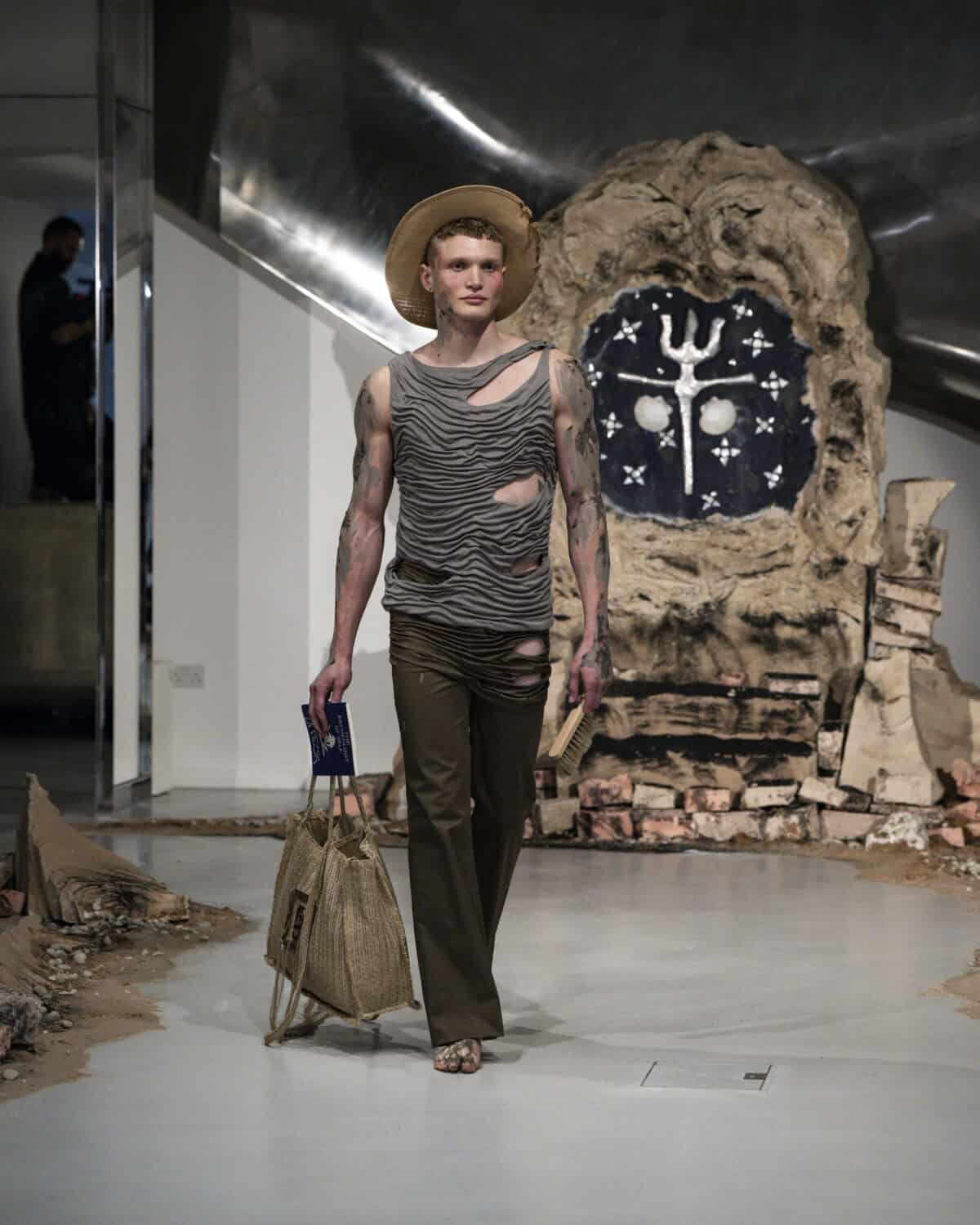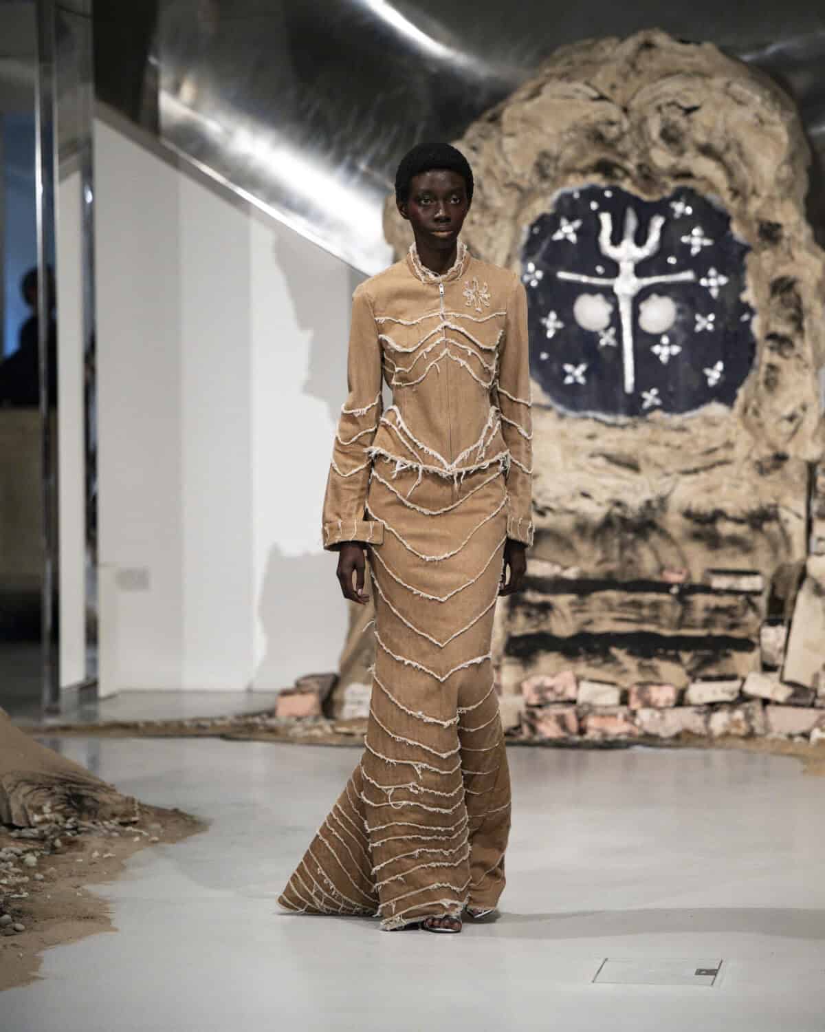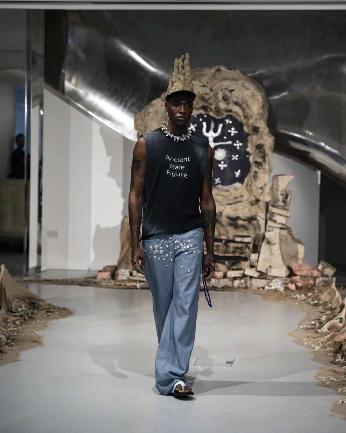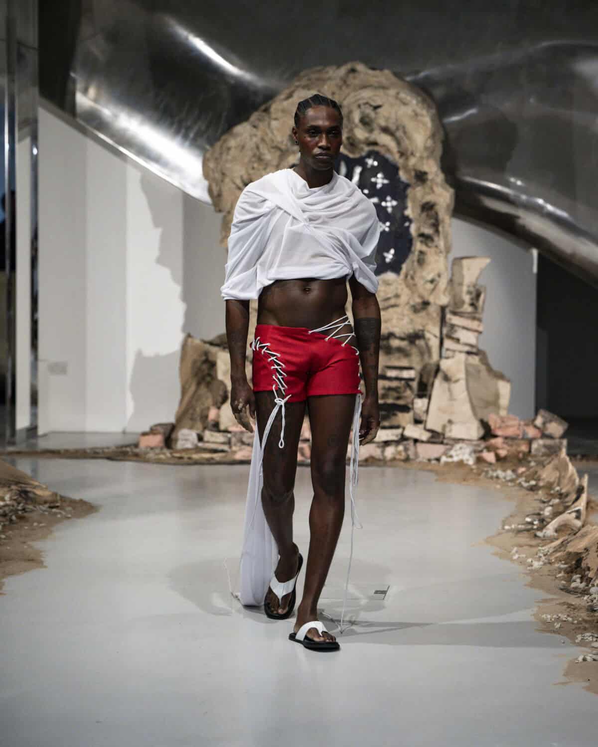 Elsewhere, there were ruched bodysuits, sheer trousers and jersey bandeaus styled with undone elegance. The overall mood was softer, a bit more casual, but still confident. Dipetsa isn’t abandoning its mythic roots – just making space for them in everyday life. And SS26 proves that a goddess can do it all, even in flats.