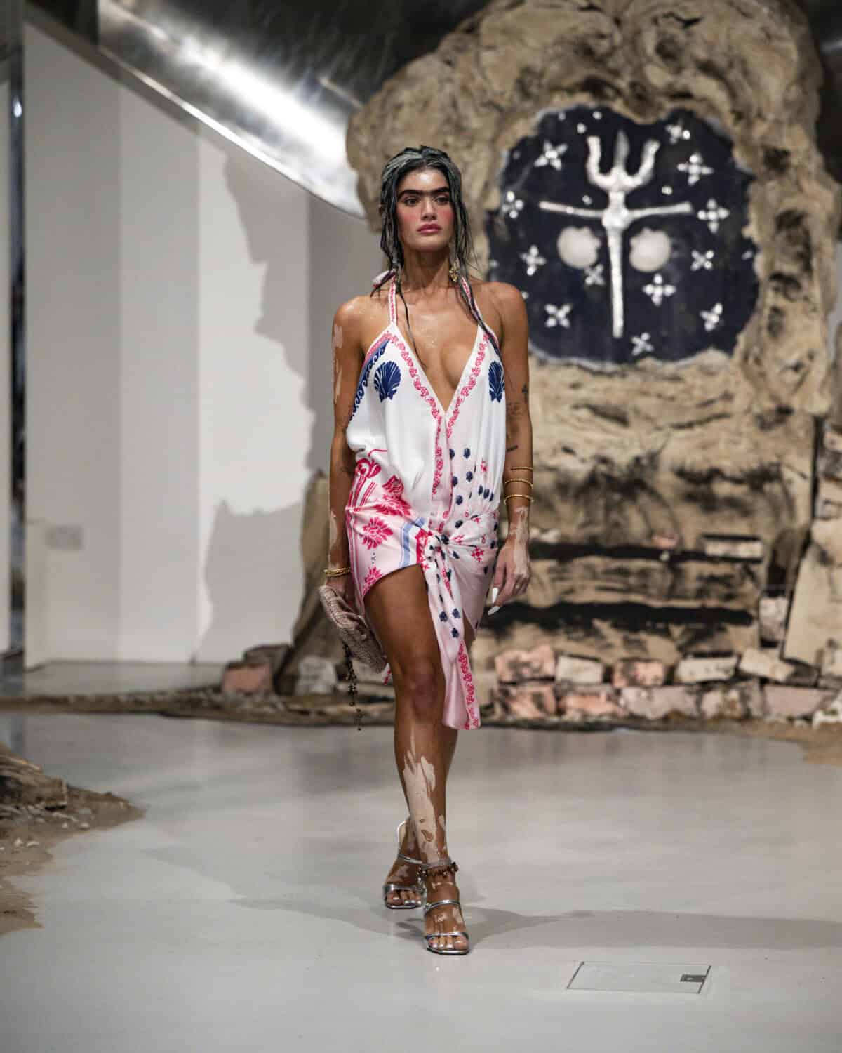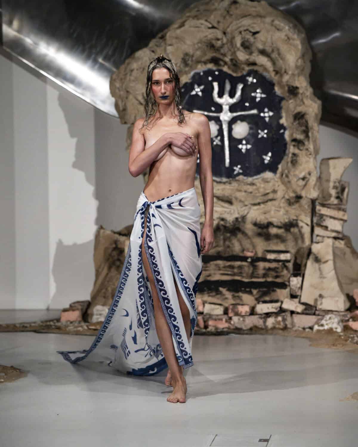 For SS26, Dimitra Petsa stayed close to what she does best – draping, sensual silhouettes and a healthy dose of mythology – but gave it a lighter, more wearable twist. The show, held yesterday, was set to the soft sounds of the sea, and the clothes flowed with the same ease.