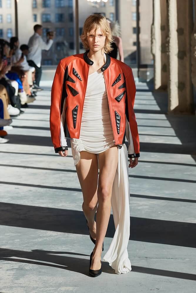 Leather and lace brought the heat just as architecturally durable denim goodies added utilitarian elements. Not to mention, Lee introduced a saucy scuba capsule within the wider offering and while the neoprene garms were great for a deep dive they would also be ideal for a wild rave over in East London. The language of motorcross style came through as well and was apparent in padded, leather materials made into bulbous coats, slacks and body harnesses evocative of fetish wear. Overall, the edit felt ready to dress us for a bangin’ night out or a day spent in the office, but either way it was supremely Dion Lee.