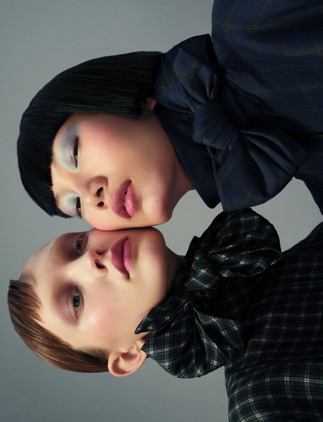 As for how these looks came about, he explains that, for him, the mood board is more of a practical thing. He starts with the layout and how many shots will be needed. Then there’s what the magazine or the editor (or a campaign) wants to bring out. “But quite often it’s just on the day itself that you get guided by the models and the styling. We also had Pierre. I remember the days that I used to shoot with him, and his photography was different. It’s more sensitive now, more poetic. In the studio when I saw the first shots, I was like, oh, this is a different Pierre, he’s evolved. So, I moved with that also. We have to, not fight against things, but go with things to make it look good.” There was Sebastien Bascle on hair, creating dos with “no waves, a bit boyish, a bit graphic”. And then “of course, the models because they are the leading ladies in our story. They guide me because of the way they are, the sophistication, the shapes of their faces, the way they capture light, the way they pose. Et voila.” What’s key on a shoot like this is that everyone’s working together.