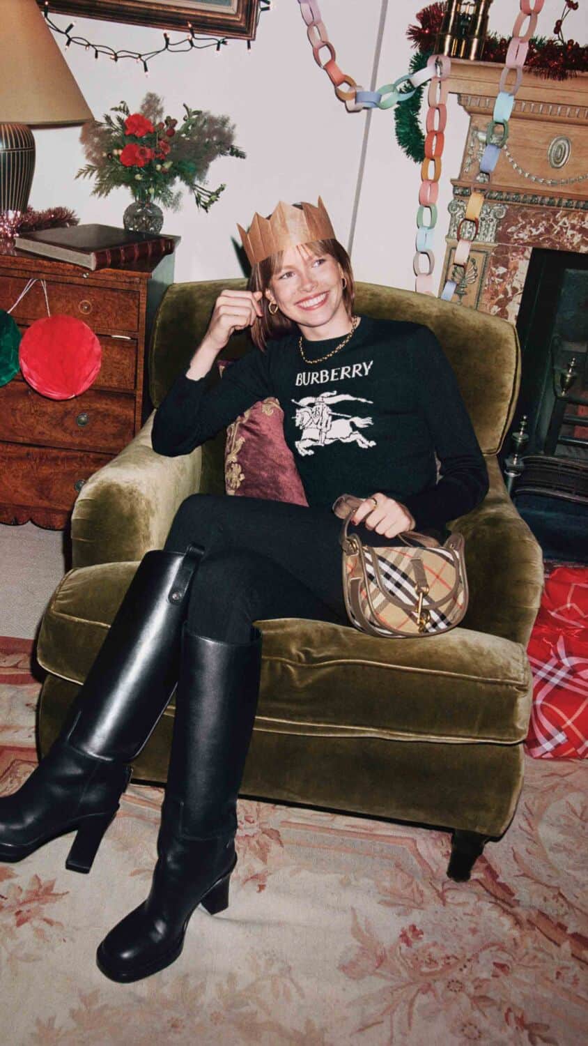 Name your favorite holiday movie. Was it Love Actually? If so, you’ll love Burberry’s festive campaign, which finds the cast at a London townhouse, ready to celebrate the season. With the likes of Jennifer Saunders, Naomi Campbell Ncuti Gatwa, Son Heung-min, and Rosie Huntington-Whitley, the images capture a hectic yet fun day of party preparations. There’s canapes, pudding costumes, and dogs in cute outfits culminating in an impromptu doorstep performance of We Wish You a Merry Christmas. To accompany, Burberry’s going all in on the Christmas spirit with a takeover at Bloomingdale’s New York City flagship. As of this week there will be a pop-up space that’s meant to resemble a cozy British cottage and will include a selection of gifting items. In addition you’ll find an exclusive capsule collection with a red colorway of the brand’s signature check as well as other favorites like trench coats, cashmere scarves, and fragrance. Not in NYC? Don’t worry, you can also find these pieces online and at select stores nationwide.