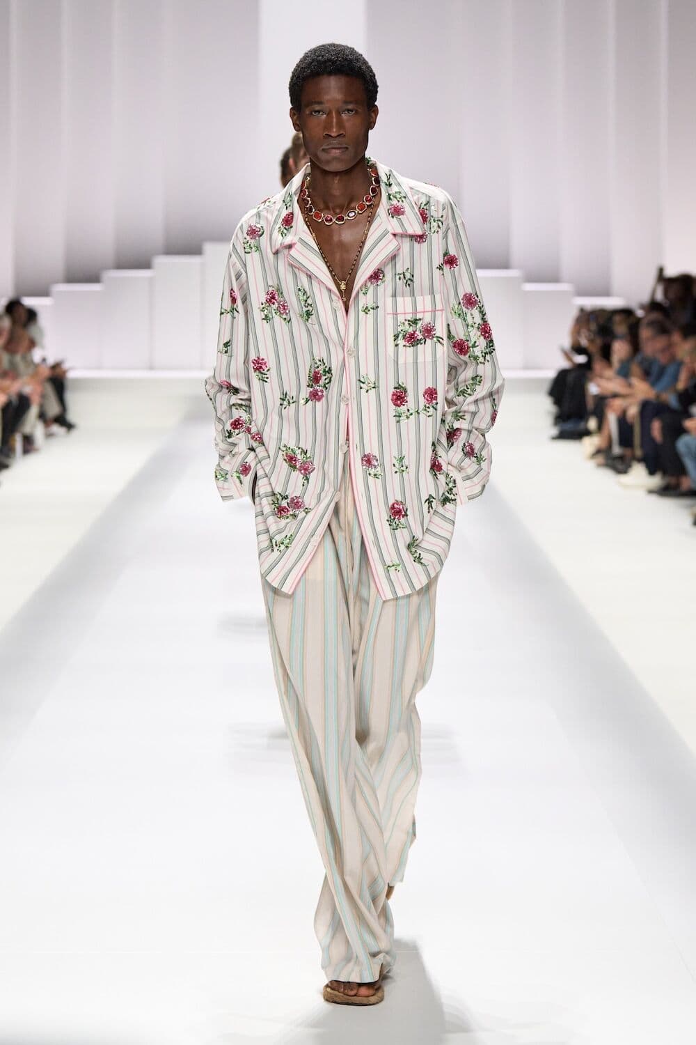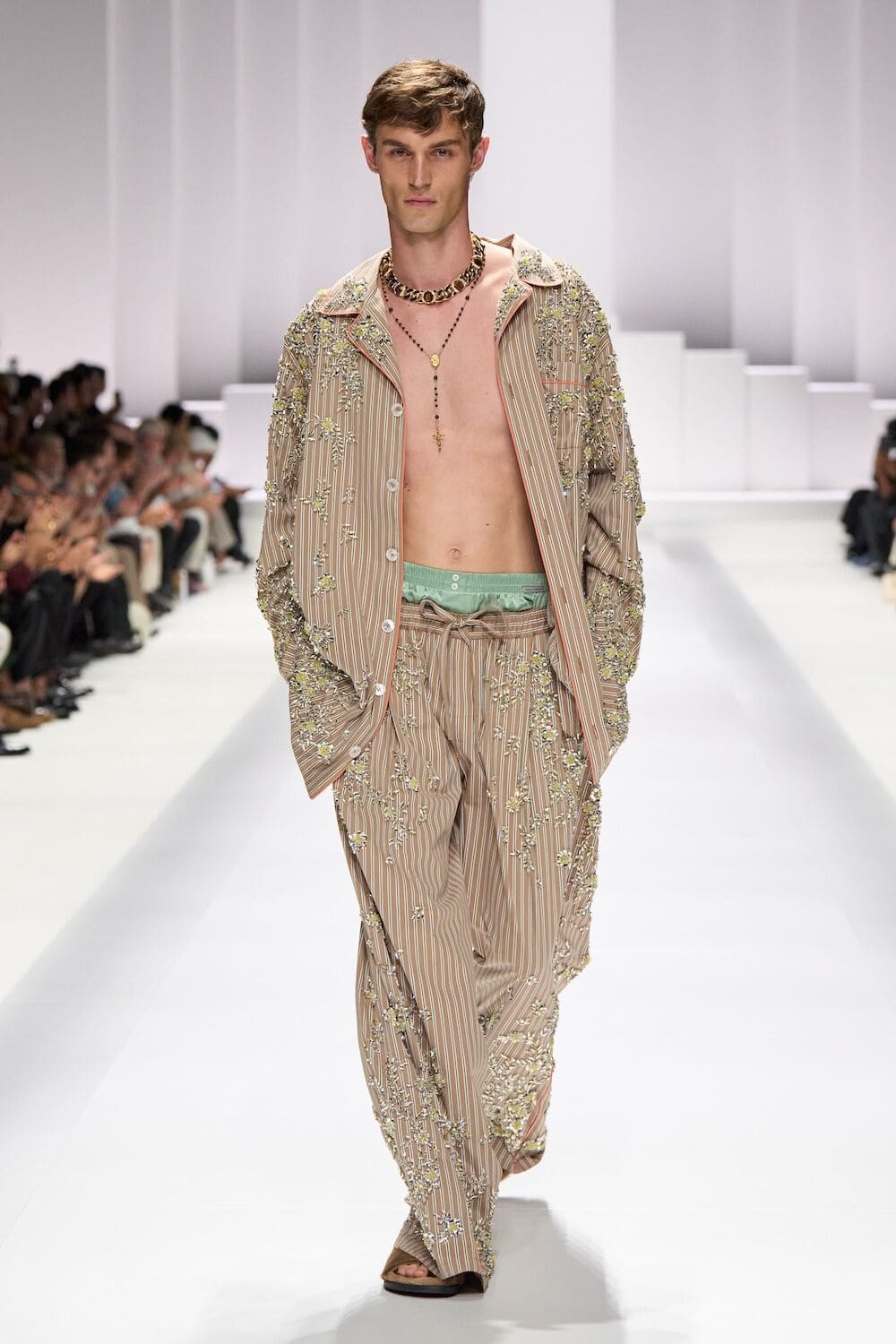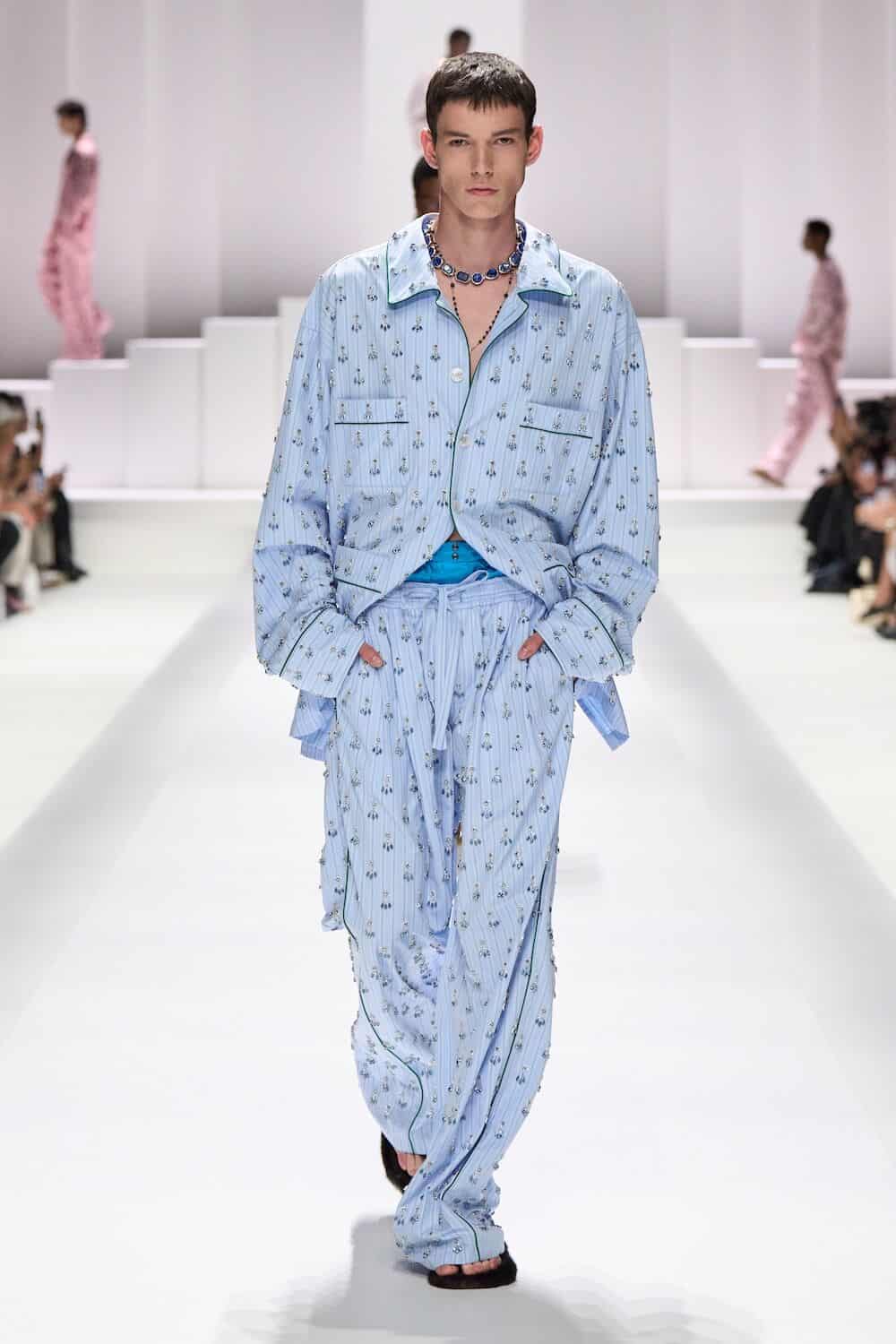Things were taken up a notch when, at the end of the show, a series of pyjama sets with crystal embellishment graced the catwalk, taking your beloved jimjams to new heights. Add in mock croc leather jackets and oversized totes doused in animal print for good measure and you have a well-rounded wardrobe that turned the casual into something rather special.