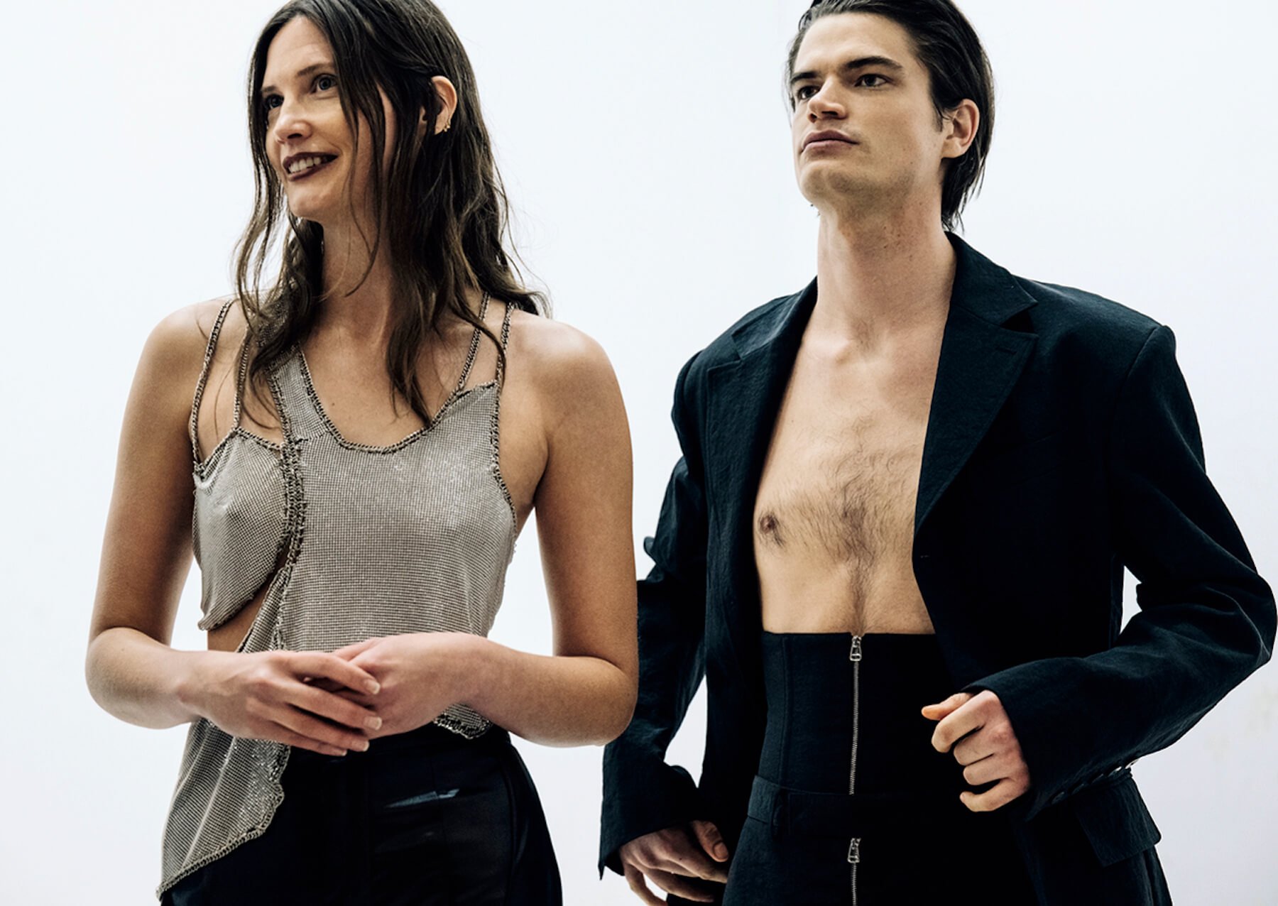 When I jump on a call with the designers behind Eckhaus Latta, there’s a three-hour time difference between the pair. Mike Eckhaus is perched at his desk in New York, well into his working day. Zoe Latta, on the other hand, is pulled up on the side of the road in her car – the LA morning traffic halting any plans of making it to her studio in time for this early morning interview. The pair operate their namesake label on opposite sides of the country, with an Eckhaus Latta store also situated in both cities.