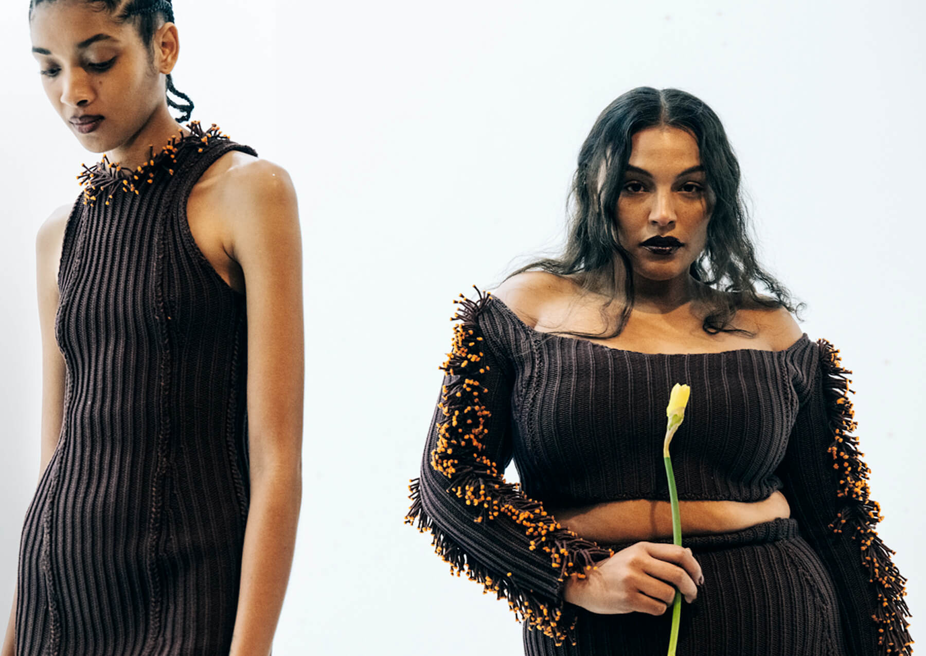 There’s a zen balance in their work between handmade resourcefulness and seriously sellable apparel that speaks to a new gen fashion audience who strive for practicality when buying luxury. Whether it’s cobweb-y knits, skeletal transparent frocks or generous lashings of awkward sexiness, these pieces pack serious punch (and are shoppable at SSense, Dover Street Market and more than 30 other international stockists).