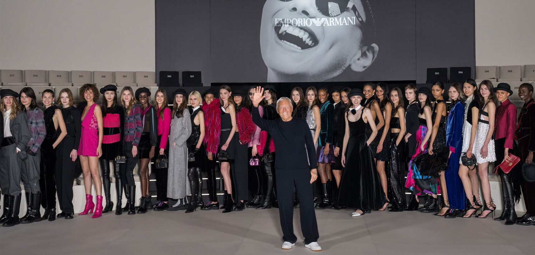 From the first moment the smiling models sauntered into the Armani Theatro, presented this season in the round, the collection, Circus of Life, was an expression of upbeat joy from Mr. Armani, following in the same sprit as couture shown just a month ago in Paris, which in turn was a play on the Harlequinade. The jet-black velvet shorts off set, the natty pink jackets with velvet lapels; a nylon bomber edged with velvet added a luxe invitation to party. The super skinny thigh length boots had just the right amount of chunky extended Cuban heel and the Cabaret-esque Sally Bowles bowler hats put the purring into this night. We like a Kit Kat club vibe. Buttoned jodhpurs ringmaster style, emerald and cobalt velvet pants suits were all softly tailored classics, deep corset belts cinched, giant paillettes rustled, all ready for mad dancing and going off like fireworks. A-line short swishy party dresses and bundles of pearls were a twirling a lesson in Emporio Armani. And then there was the Guy Bourdin exhibition that has just opened at the Armani Silos space across the road – mirroring this richness of colour all of its own. A must see.