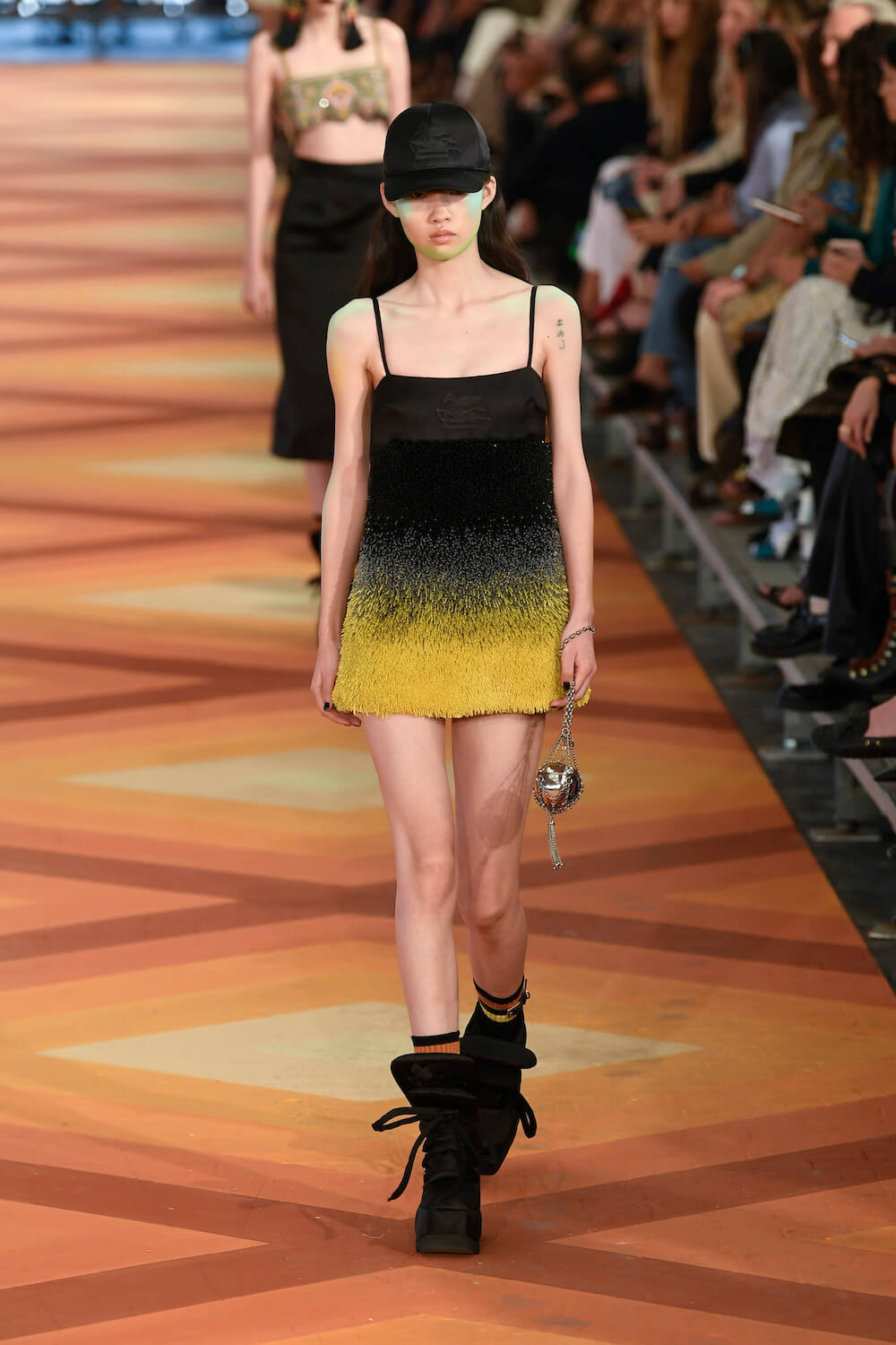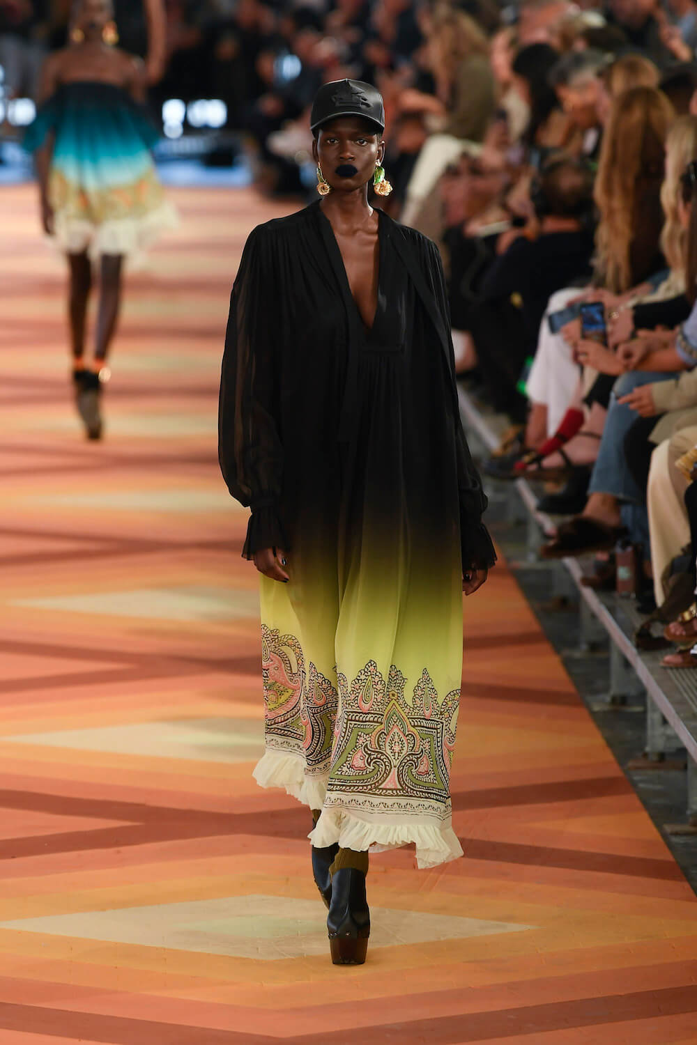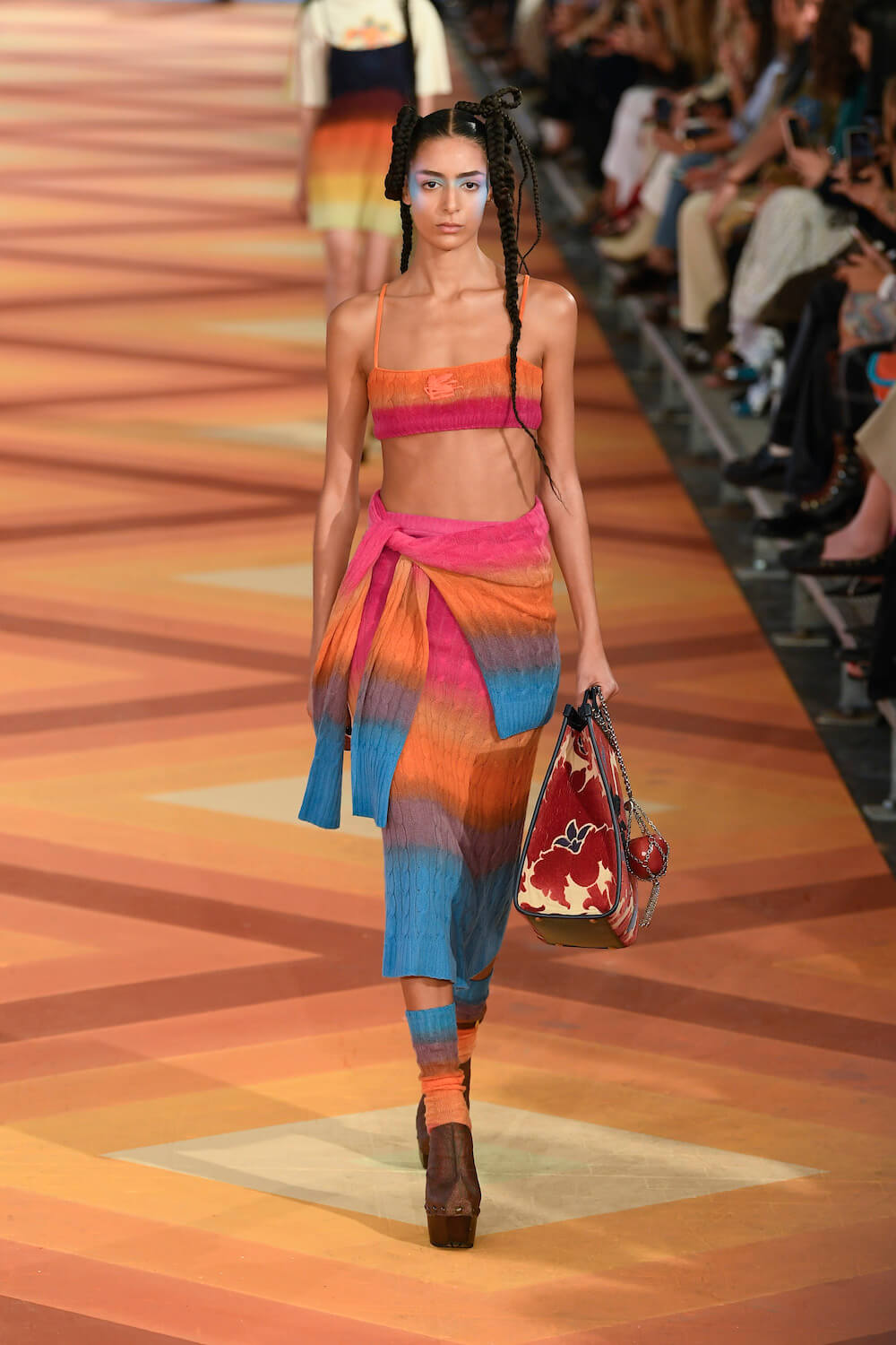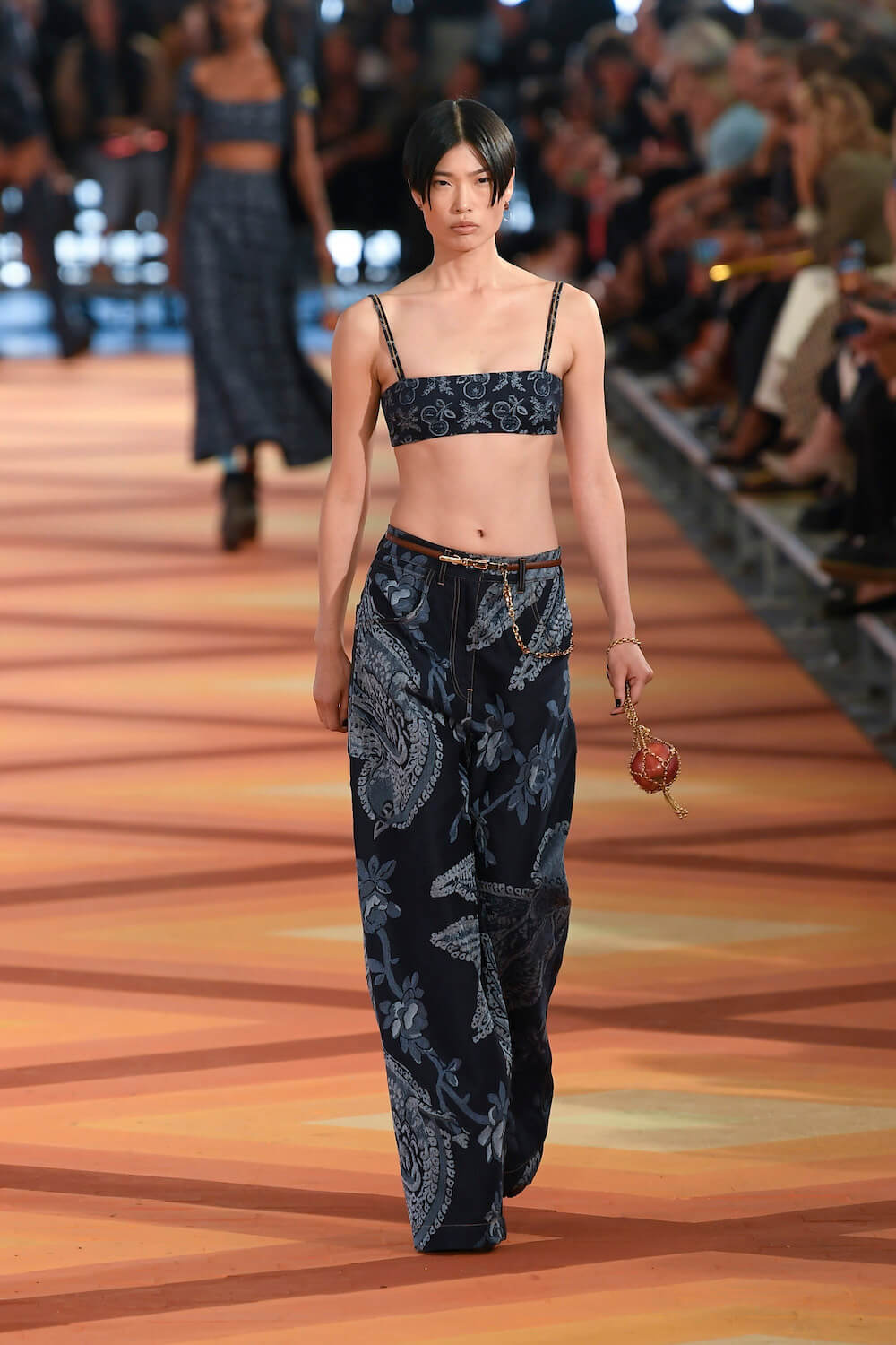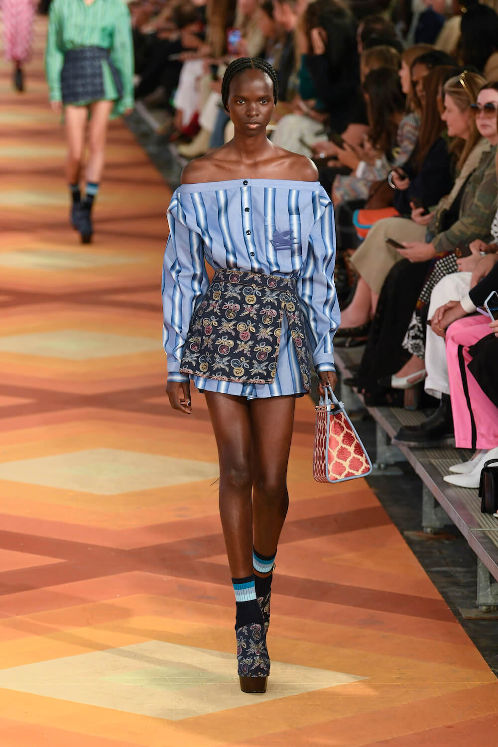 SS23 marked a new era for Etro, with the debut of creative director, Marco De Vincenzo. The designer is a certified talent (his side-gig is designing accessories for Fendi) and proved it by deftly steering Etro in a fresh, more youthful direction without losing the bohemian spirit of wanderlust and luxury on which the house is built.