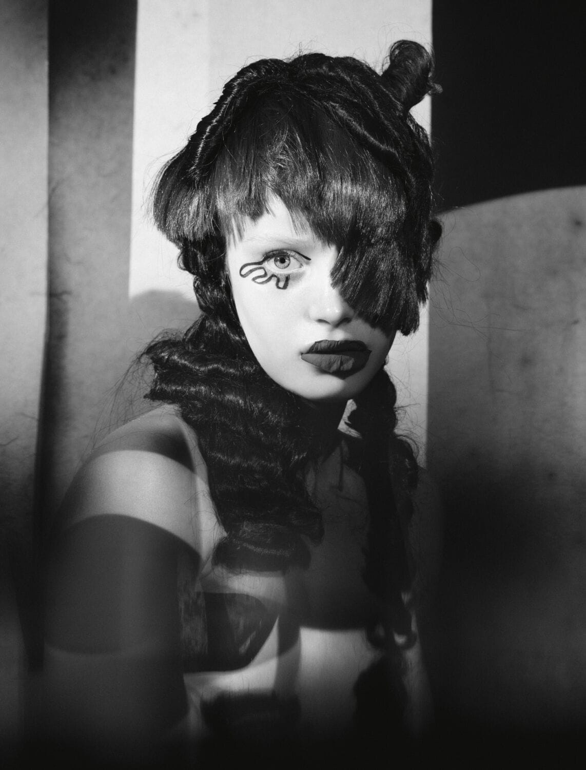 Going with the flow was very much the approach to this shoot. “I didn’t have a clue what I was going to do,” he tells me. “I spoke to Val [Garland] beforehand and she asked, ‘What’s the brief?’ I said, ‘There is no brief.’ I know when I get into a studio with Val things happen because we’re closely connected and work well together creatively.” For these images, he says, “It’s about looking at the style of photography and thinking what you might do, and you can change it on the day. I’m into pushing to see where it goes. We have to come at it in a very curious way.” Not for him are hairstyles with hard profiles or clear guidelines. “That’s not my thing. I’m Mediterranean, soulful, concerned with the story, person, character, being intrigued by them and wanting to know more. Because people have conflicting views and feelings and I like to bring that out in what I do. I want to be able to look at a picture for years and enjoy it rather than look at it as something trend-based.”
