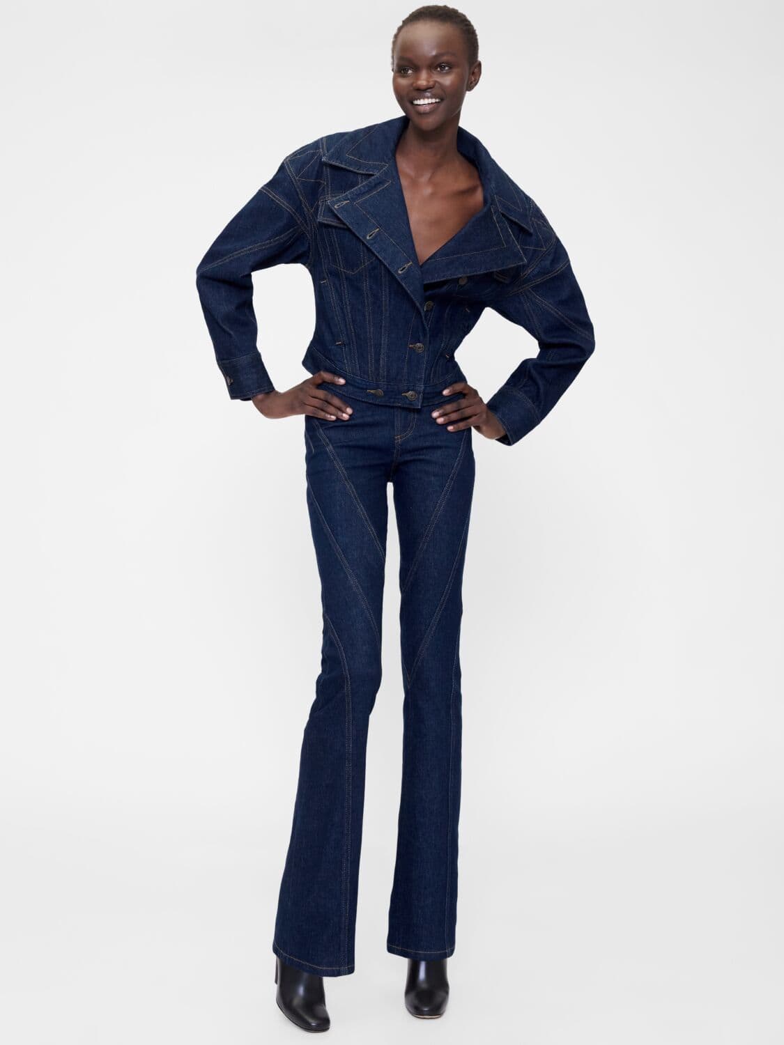 At the center of the collection lies Posen’s signature approach to structure and movement. “This collection feels personal and endlessly adaptable,” he explains. “Every piece carries a presence, from tailoring that frames the body to fabrics designed for movement and dimension.” This duality can be seen in items like the Icon denim jacket and high rise boot-cut jeans, pieces that turn the fabric into sculptured silhouettes. The same seam-focused construction shapes styles like the denim shirtdress and the cap-sleeve midi dress, both designed to move effortlessly between day and evening while maintaining structure.