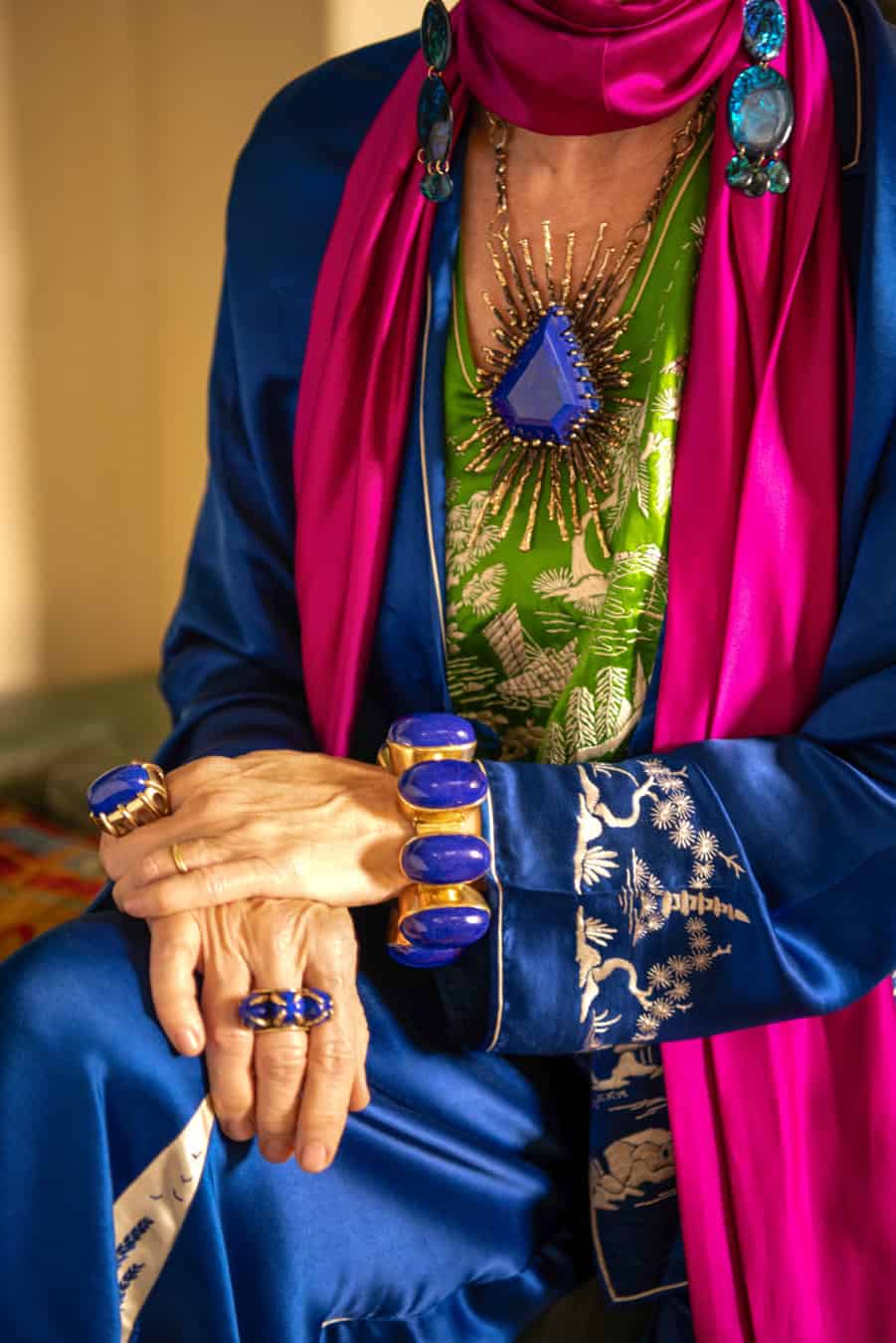 The Row girls love jewellery, too. They love minimal pieces, as well as vintage and Mughal Indian jewellery. We all love the same things and I think when it comes down to saying, ‘Okay, this will be in stores, it’s more minimal’, it’s black jade or silver. When I do a trunk show, I will have things that would feel very out there for them, but they like it because their stuff can be very minimal and it looks really great to have something different. It could be decorative or big and you might say that’s not The Row, but it looks really good with The Row.