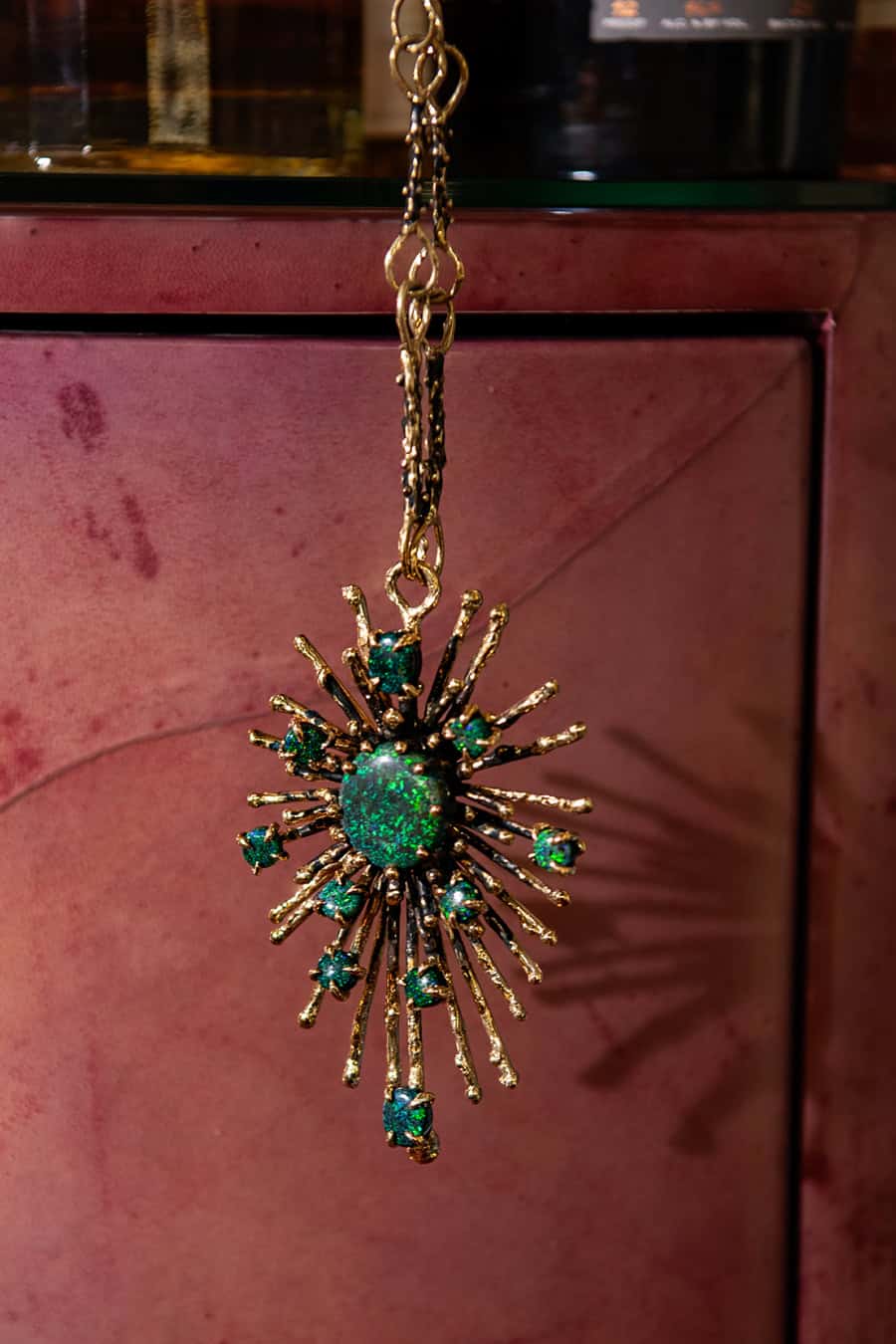 Yes, it’s protective. It’s armour. I’ll never get on an aeroplane without my Saint Christopher [talisman] or black tourmaline [necklaces]. Things that I feel protected wearing. That’s how I see every stone. A lot of times, I’ll find one stone that I love and that’s it; I’ll work around that stone. It may not be the best business plan, but that’s just how it goes for me.