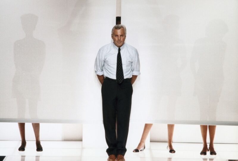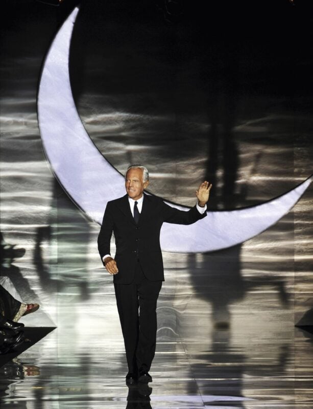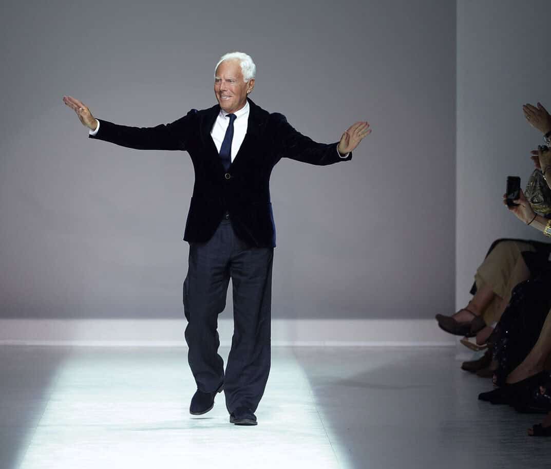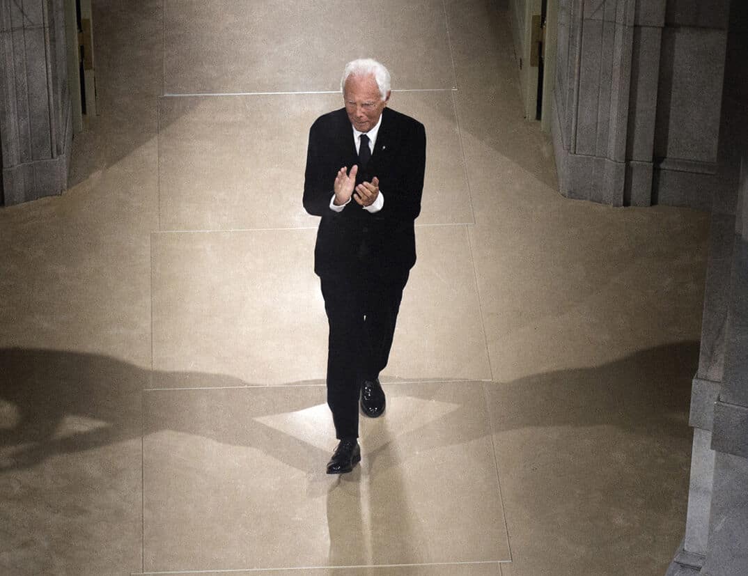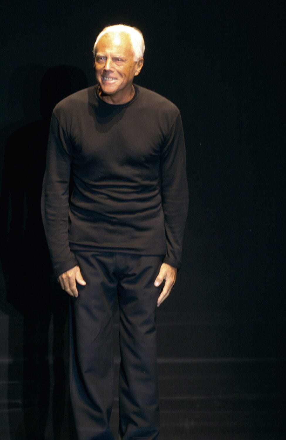 from left: Mr Armani at Giorgio Armani Privé SS05; Mr Armani in Tokyo, 2019