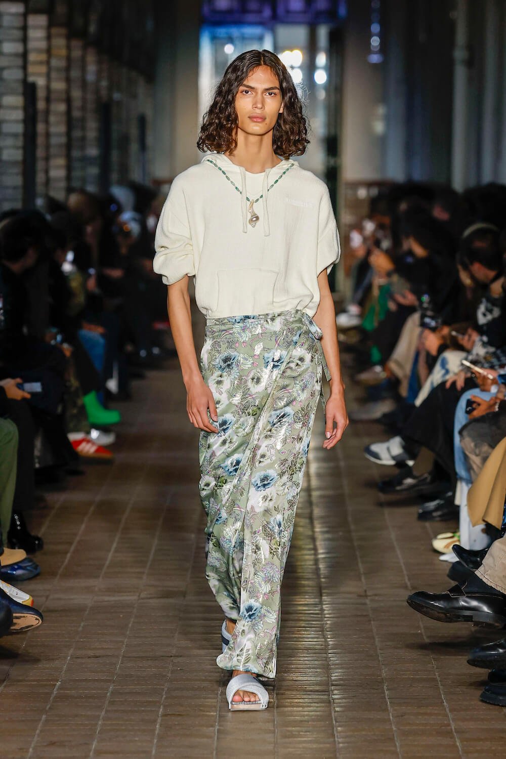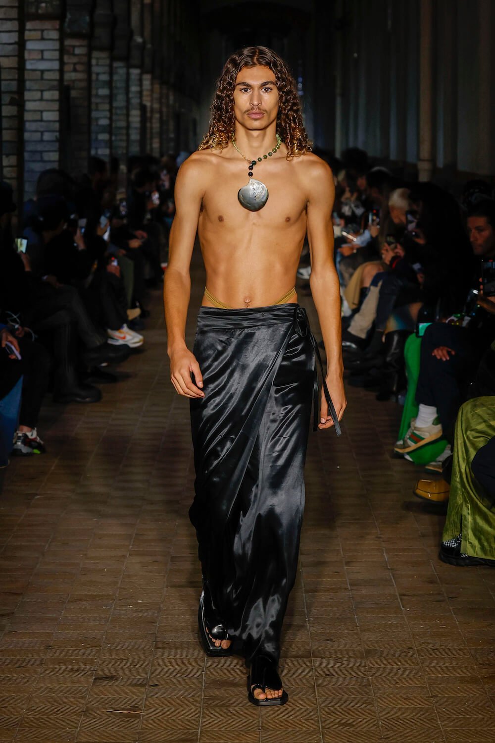 Benjamin A. Huseby and Serhat Isik of GmbH have, over the past few seasons, swapped out their clubwear for sauve suiting and elevated everyday wear with cultivated cuts. Simultaneously so, the GmbH boys are easing into their new role at Trussardi – which they’re doing with a skilful savoir faire, we might add – so sure enough, their SS23 offering was just as brazenly deluxe.
