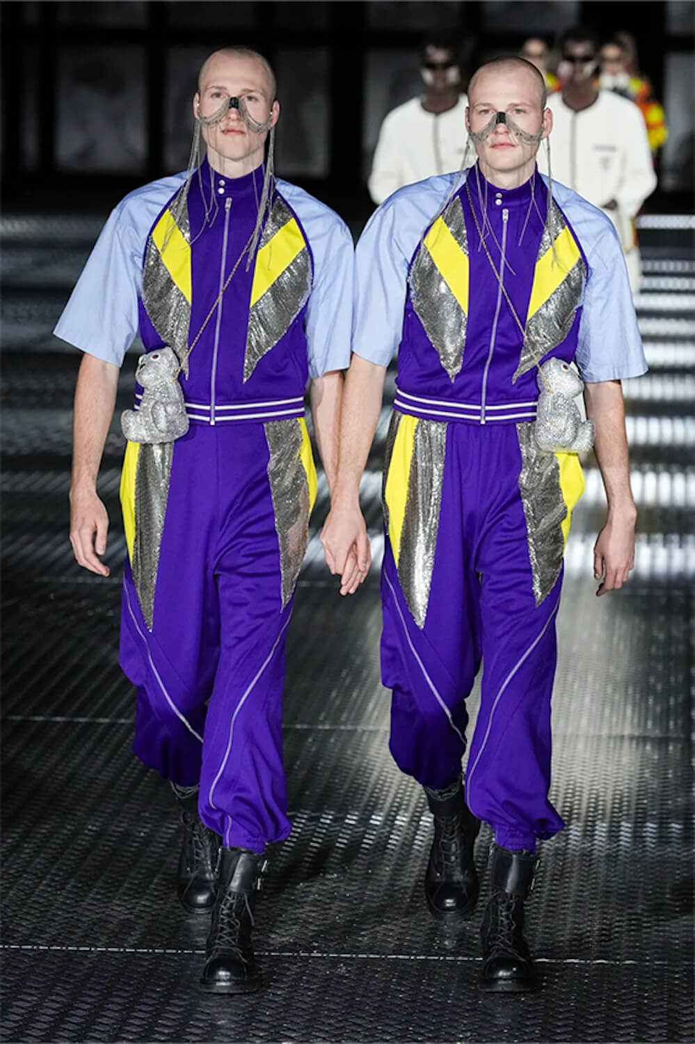 For the finale, each set of identically dressed, identical twin models joined hands and walked two by two. It was a simple but powerful gesture of togetherness and solidarity that packed a huge emotional punch.