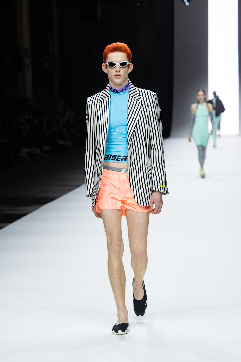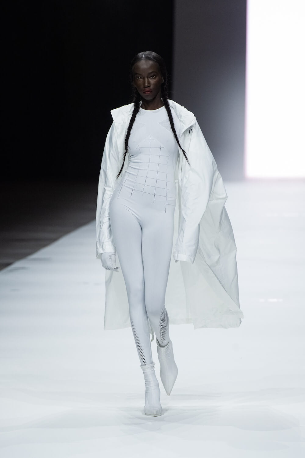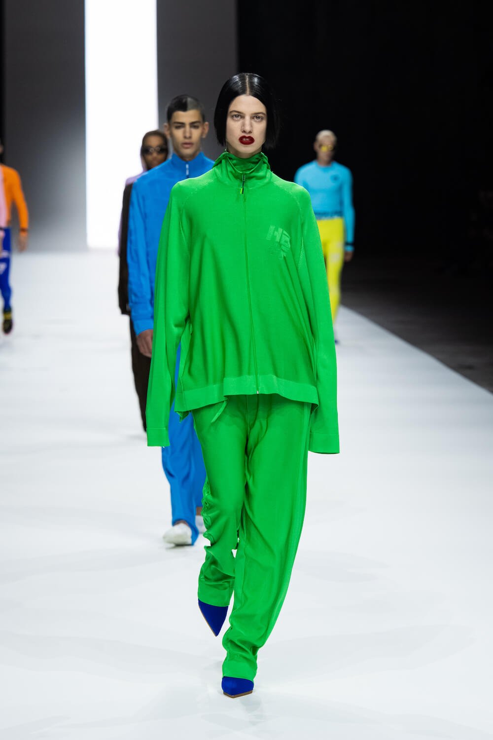 Ackermann is a runner and used that as his touchstone for ice-white running tights, fluttering nylon coats, keyhole, apple green mini dresses and onesies, slinky knitted tracksuits and body-con for boys and girls. “It’s a new approach,” he said of his first foray into the sports realm. There was none of the brashness so common in this genre. Instead, sporty Haider is all about a dynamic, high-tech, elegance in a colour palette a-typical for sportswear of brilliant white, coral, sky blue, mocha and lilac. None of it looked retro although Ackerman was inspired by the Fila archive and the stand-out style of its most famous 1970s ambassador, Bjorn Borg.