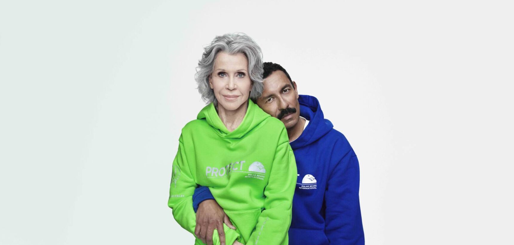 For the PBI hoodie campaign, Ackermann appears bright eyed and grinning alongside Academy Award-winning actor, producer, author and activist Jane Fonda. Ackermann says, “My hope is that by coming together with the extraordinary climate champion Jane Fonda, we can help drive people to act – and to do it now.” Fonda comments, “Collective action is the only way we can go further, faster,” said Jane Fonda. “I have put my full force into inspiring planet-friendly choices to address the climate crisis, and partnering with Haider and Canada Goose to bring attention to what’s happening in the Arctic is powerful, important and essential.”
