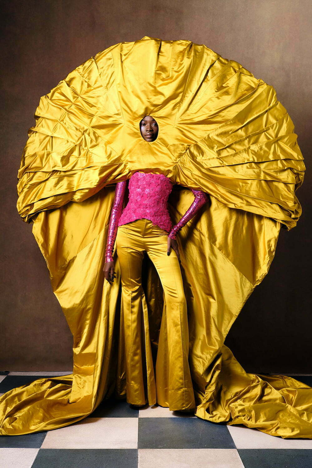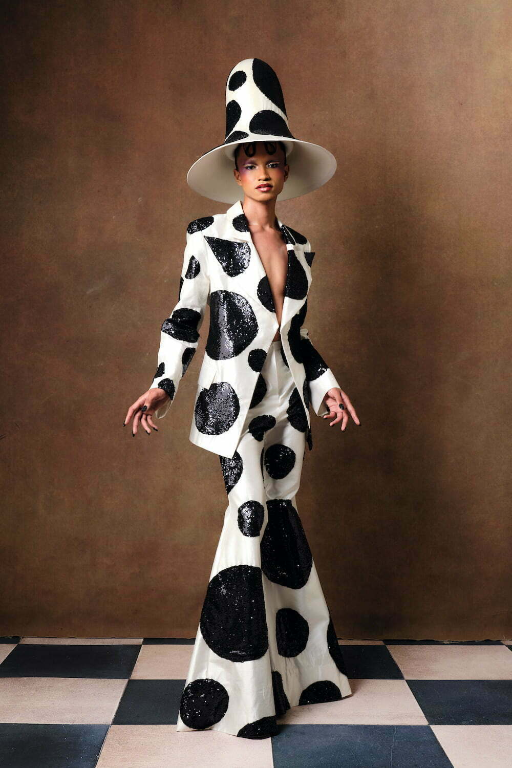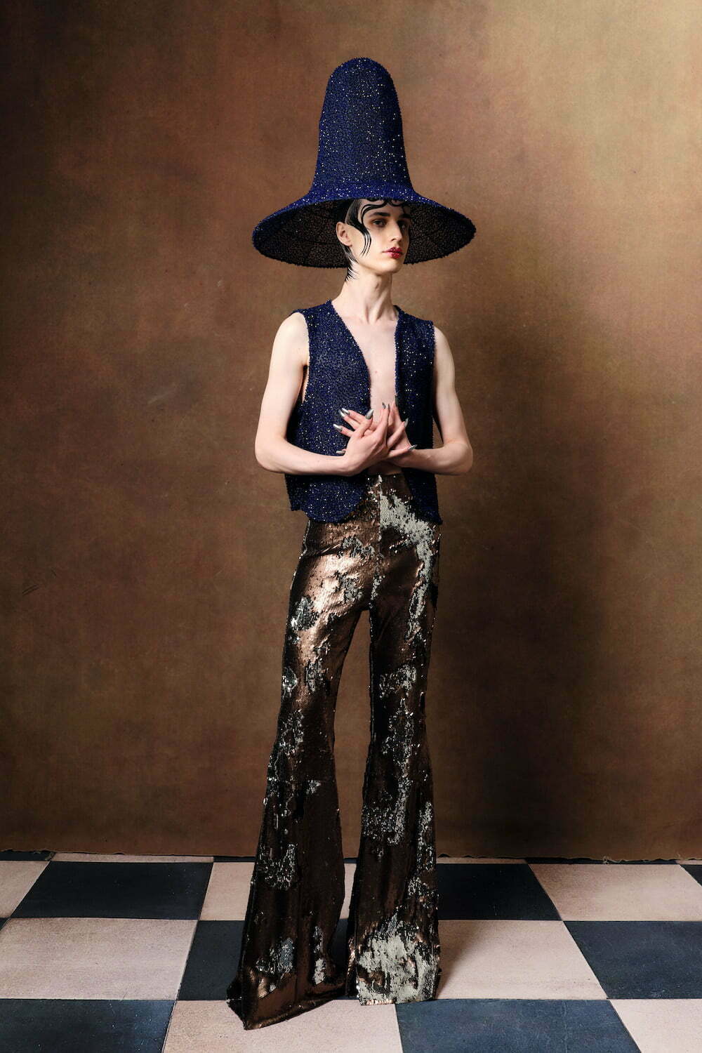 For all their sculptural drama, There’s nothing aggressive or jutting about Reed’s looks, which are enhanced by the headpieces The designer creates with his longtime collaborator Vivienne Lake. They cut through the uncertainty and anxiety of the times with pure, visual spectacle.