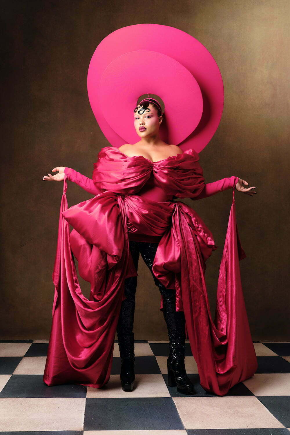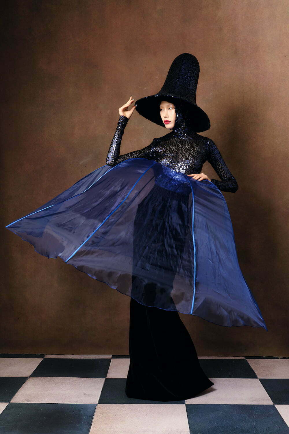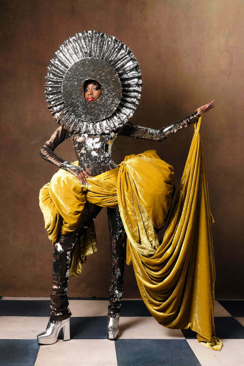For all their sculptural drama, There’s nothing aggressive or jutting about Reed’s looks, which are enhanced by the headpieces The designer creates with his longtime collaborator Vivienne Lake. They cut through the uncertainty and anxiety of the times with pure, visual spectacle.