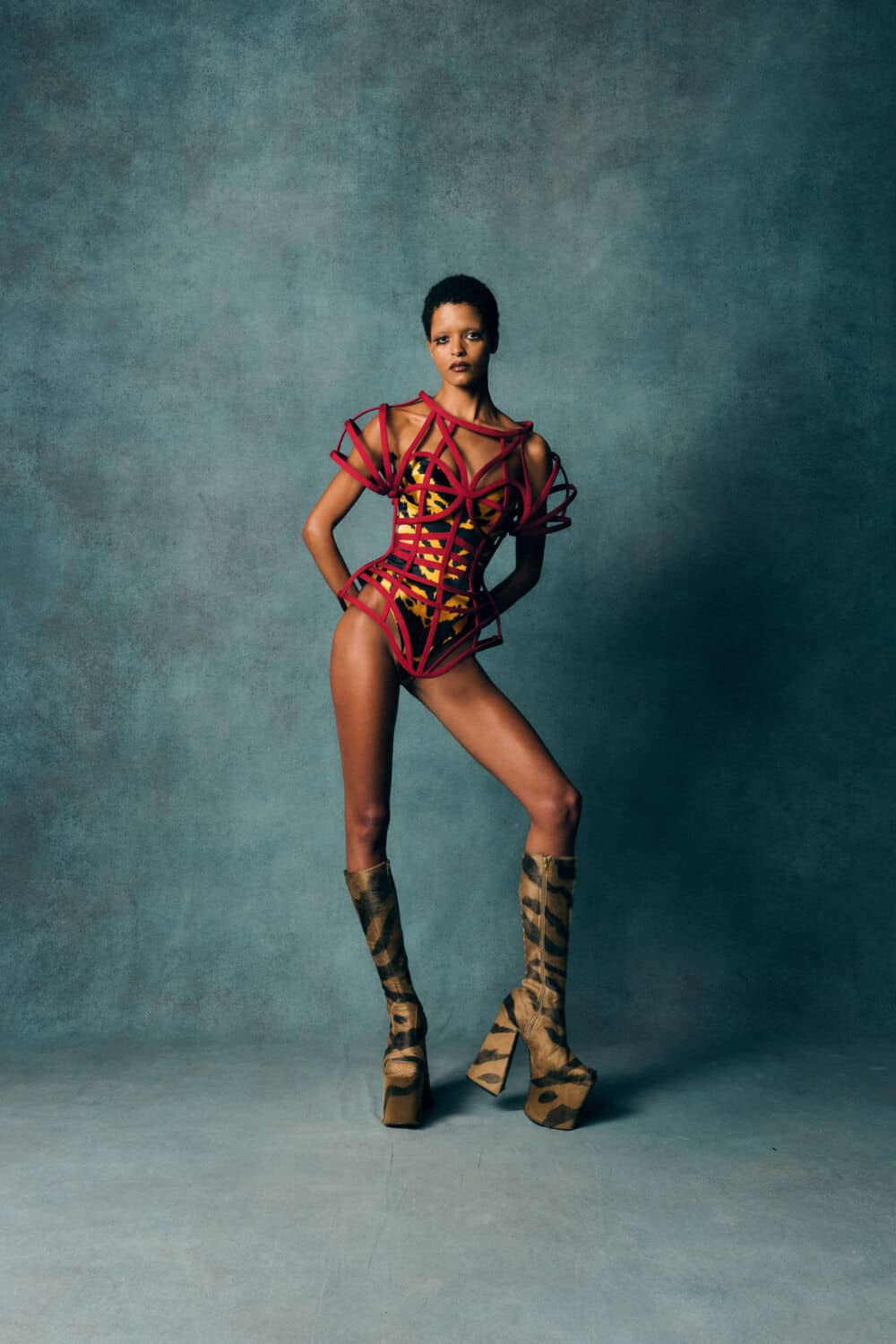 For his brand’s 10th collection, Harris Reed took over London’s Gothic Bar with The Aviary, an SS26 offering that pushed his signature theatrical style just a little further. Tiger print skirts prowled the runway, paired with corsets in rich, embroidered brocade, creating a striking mix of wildness and elegance.