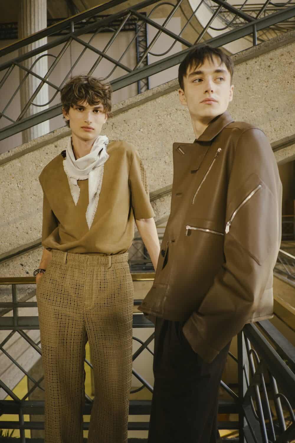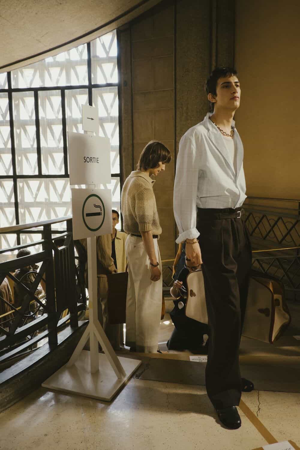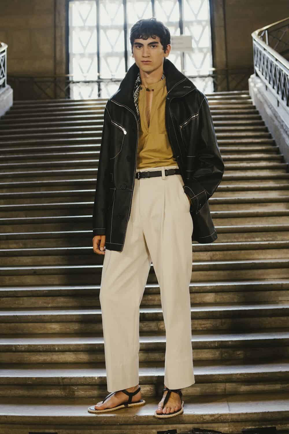 Nichanian created gorgeous, unfussy clothes that would get you excited about venturing out into the blazing heat that is currently cooking gridlocked Paris. Like open-weave leather trousers, for instance, paired with open-toe sandals, or loose shirting with exaggerated lapels that came buttoned at the navel. Easy-going, ever so elegant.