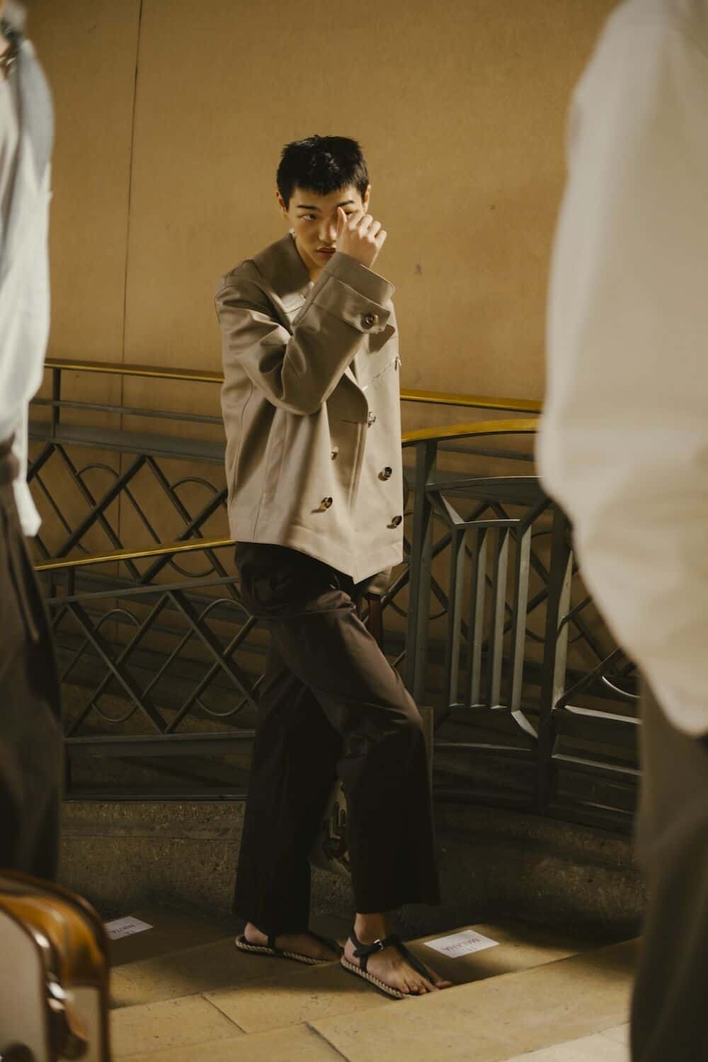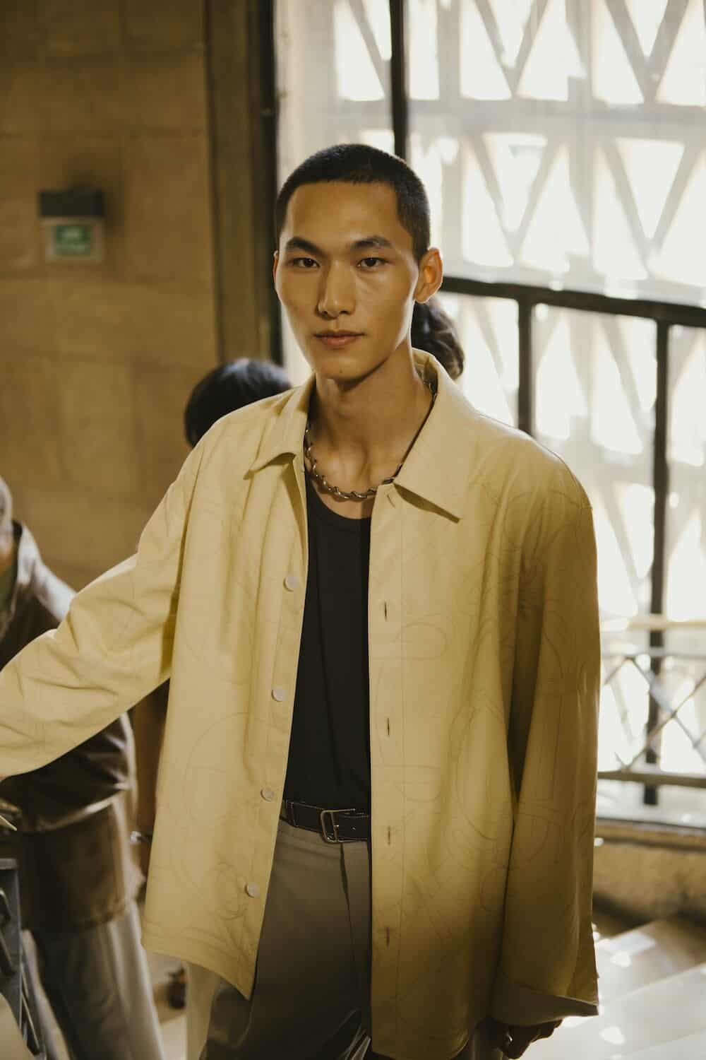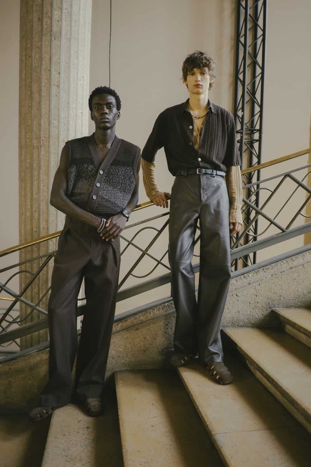 Nichanian created gorgeous, unfussy clothes that would get you excited about venturing out into the blazing heat that is currently cooking gridlocked Paris. Like open-weave leather trousers, for instance, paired with open-toe sandals, or loose shirting with exaggerated lapels that came buttoned at the navel. Easy-going, ever so elegant.