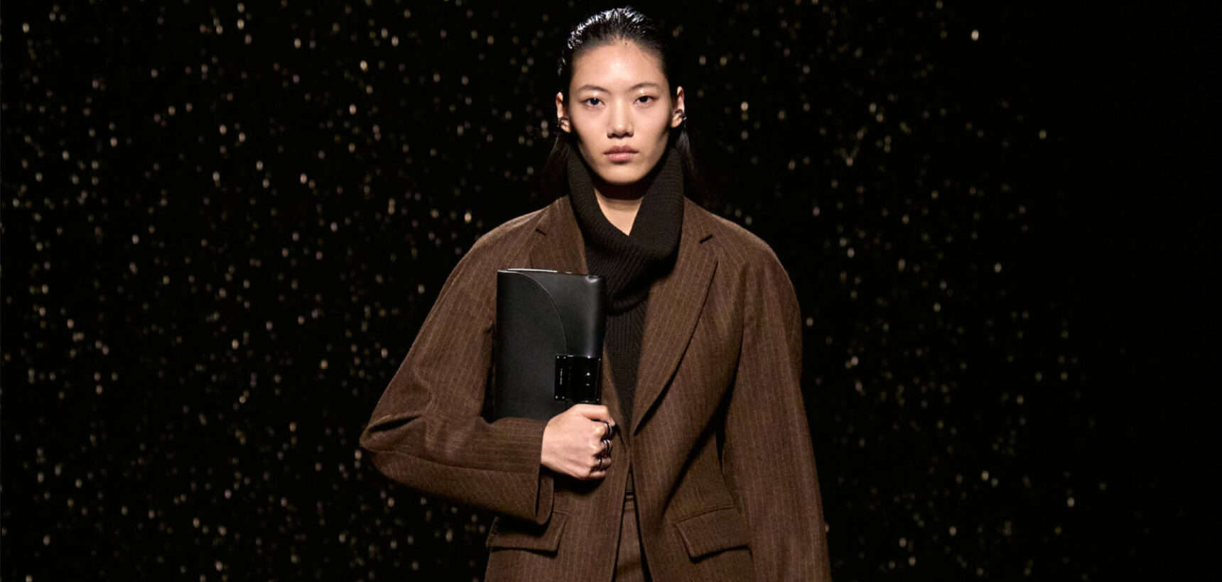 It wasn’t a light shower but a cinematic downpour that climaxed the Hermès show Saturday afternoon, as Nadège Vanhee unveiled her latest collection for the house amidst a man-made rainstorm. It was a fittingly dramatic backdrop for a collection that came laced with a need for speed. The designer had been thinking about horse riding and motorcycling, and the sort of gear you can wear to do both. Though you’d be a fool to do either donning such gorgeous clothes.